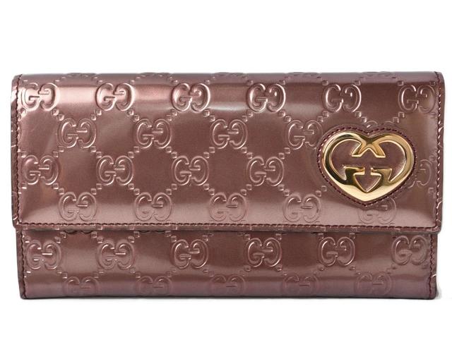 グッチより、使いやすくて人気の長財布です。光の加減でキラキラするメタリック素材です。ハートモチーフのメタルプレートがアクセント。充実の収納力で、多くなりがちなカードは、もちろん、お札もチケットもたっぷり収納できます。贈り物にも人気のグッチの小物雑貨です。