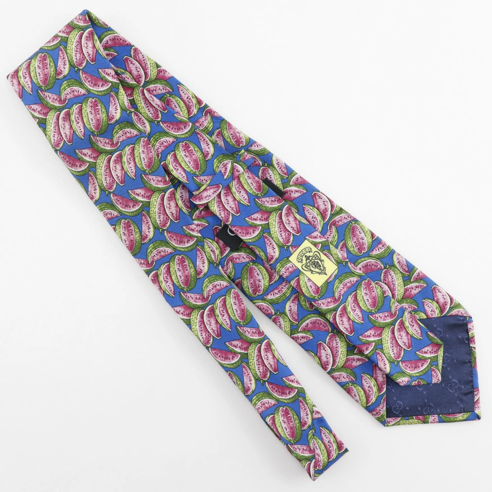 Gucci Watermelon Silk Tie, Made in Italy, Blue, Men's, Pre-owned, B-Rank