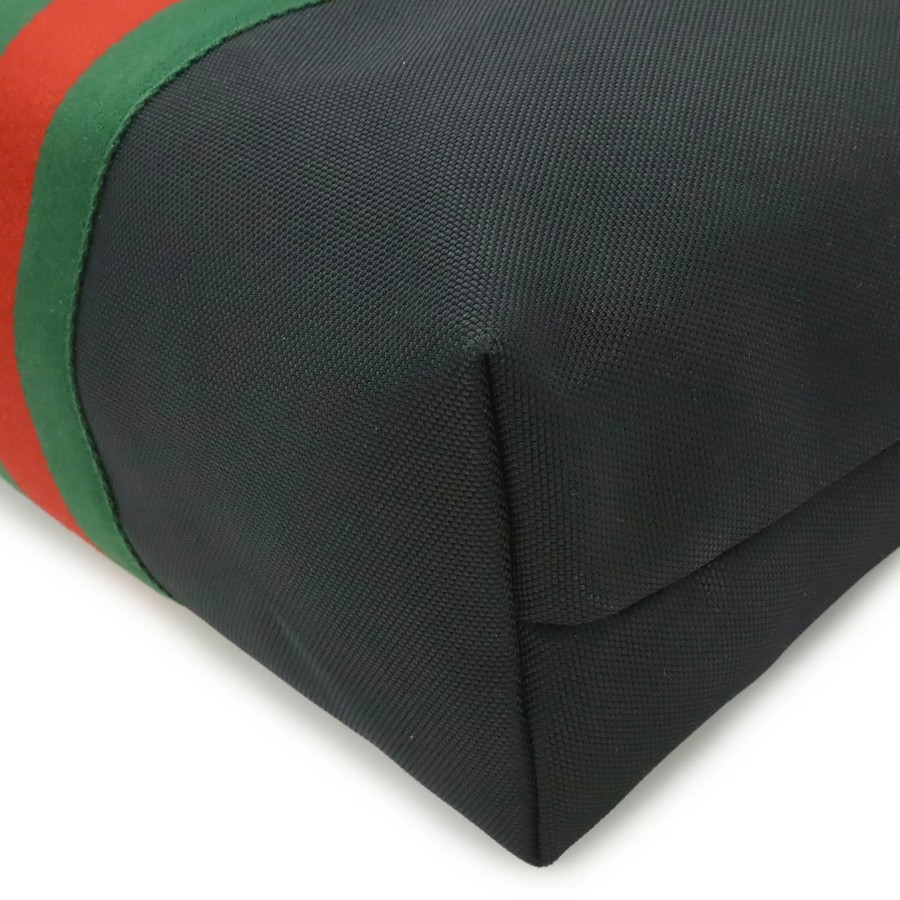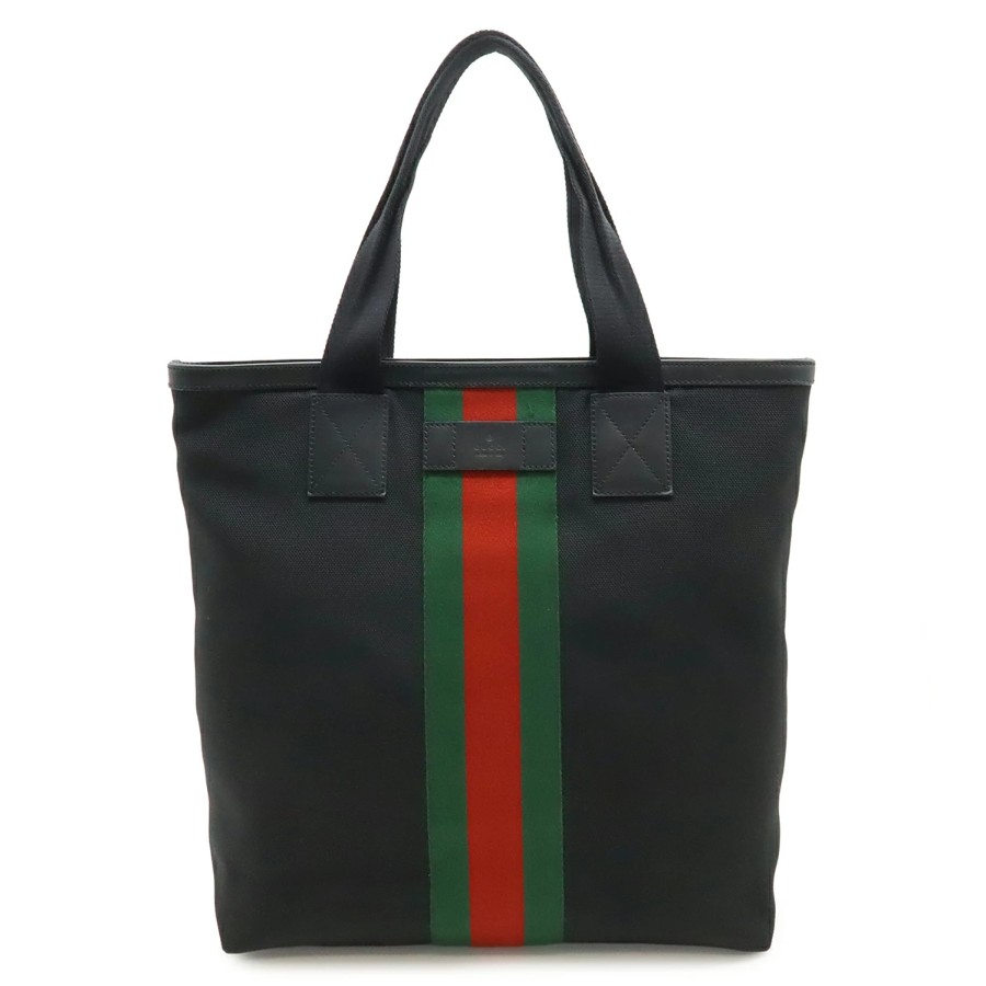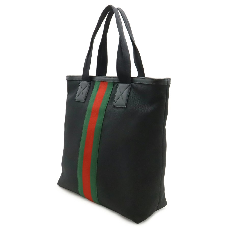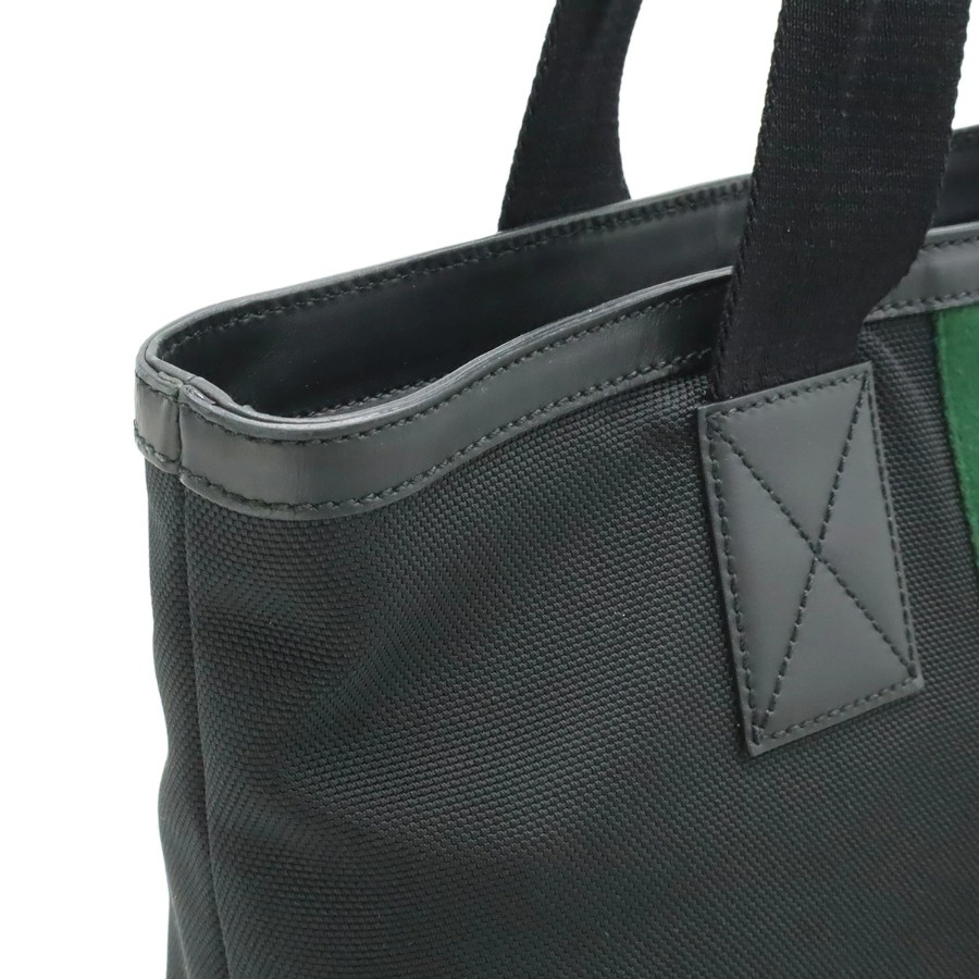 ブラックの無地キャンバスにレッドとグリーンのストライプがアクセントになったトートバッグ。
