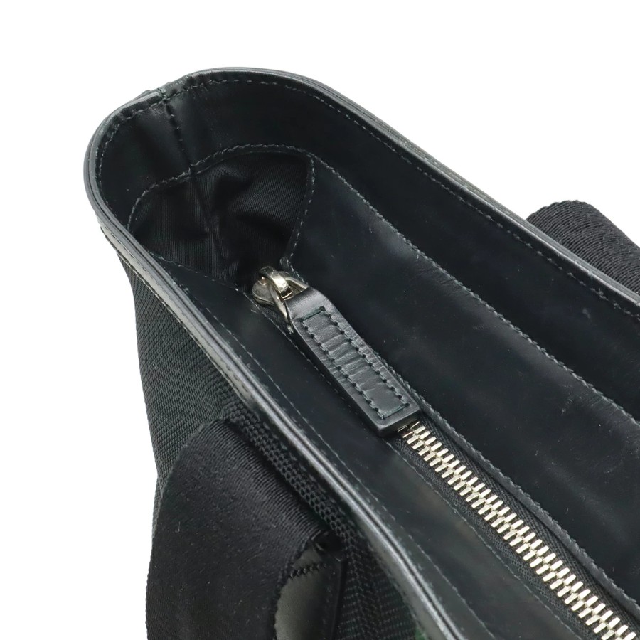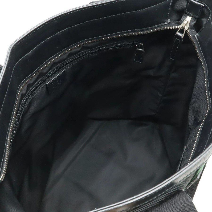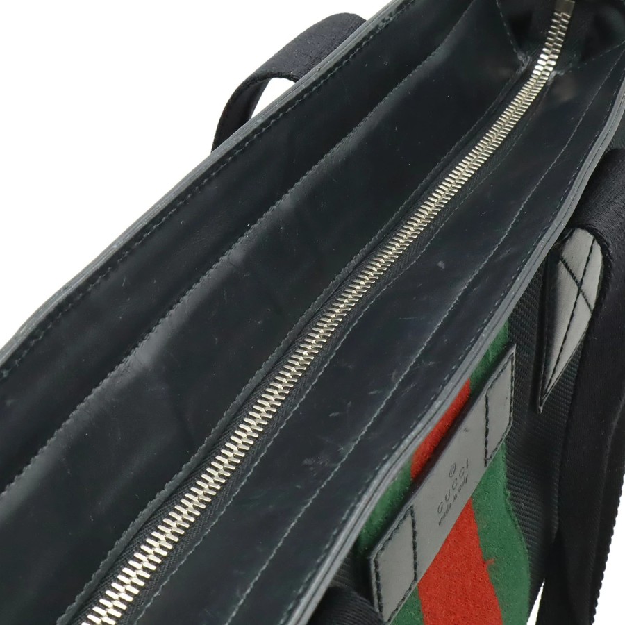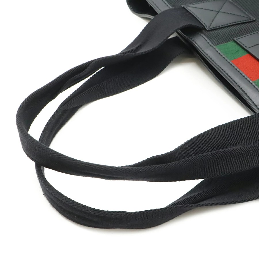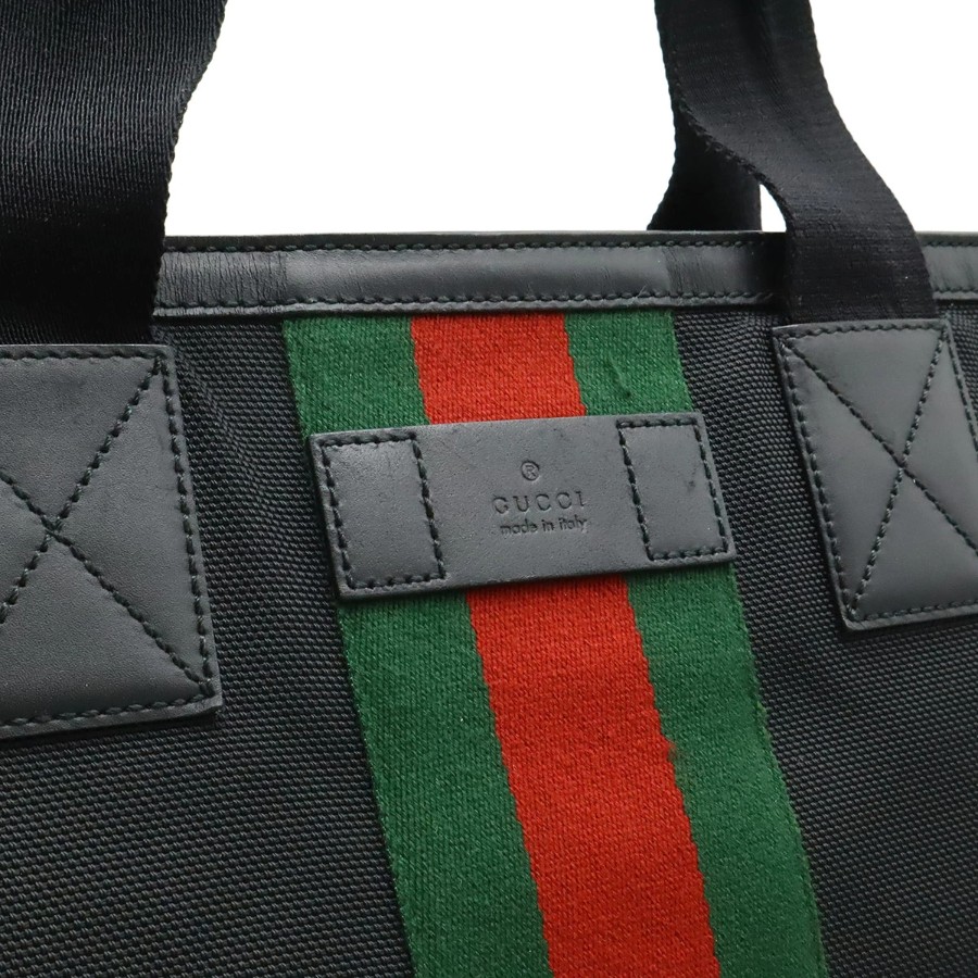 ブラックの無地キャンバスにレッドとグリーンのストライプがアクセントになったトートバッグ。