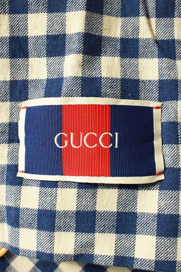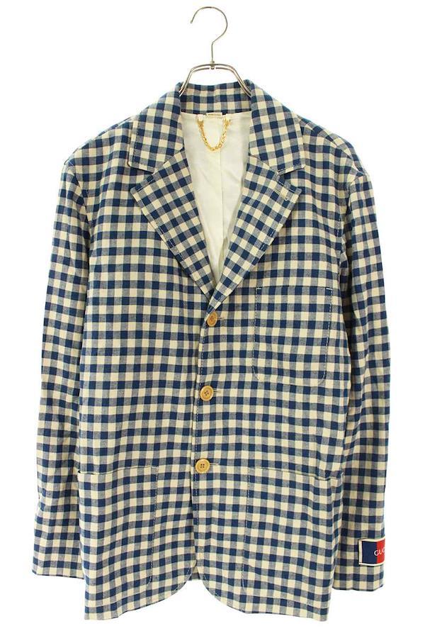 ランク:B (使用感がある商品)状態備考:全体的に毛羽立ちがありますブランド:グッチサイズ:46色:ブルー×ホワイト実寸:肩幅49cm 身幅53.5cm 着丈71.5cm 袖丈60.5cm重さ:-素材:(表地) コットン50%、リネン50% (裏地) レーヨン (別布) リネン (アップリケ) ポリエステル84%、金属繊維16%付属品:なしその他特徴:-管理番号:10211-251102-0111
