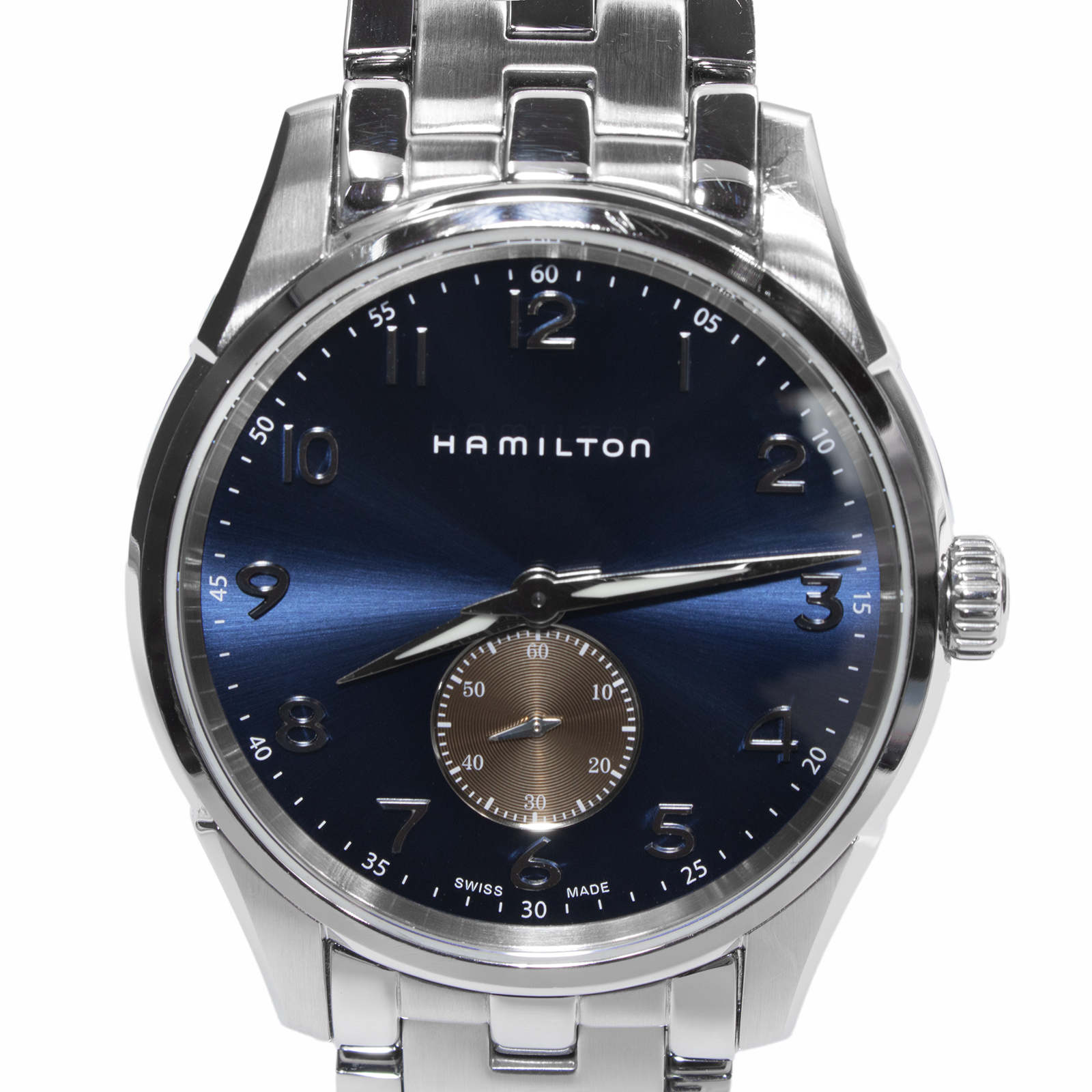 Hamilton Men's Quartz Jazzmaster Thinline Watch H38411140 in Blue Metallic Blue with Silver Logo. Simple, Slim, Business-Friendly Arabic-Inscribed Strap. Popular, Stylish, Swiss-Made. Q124