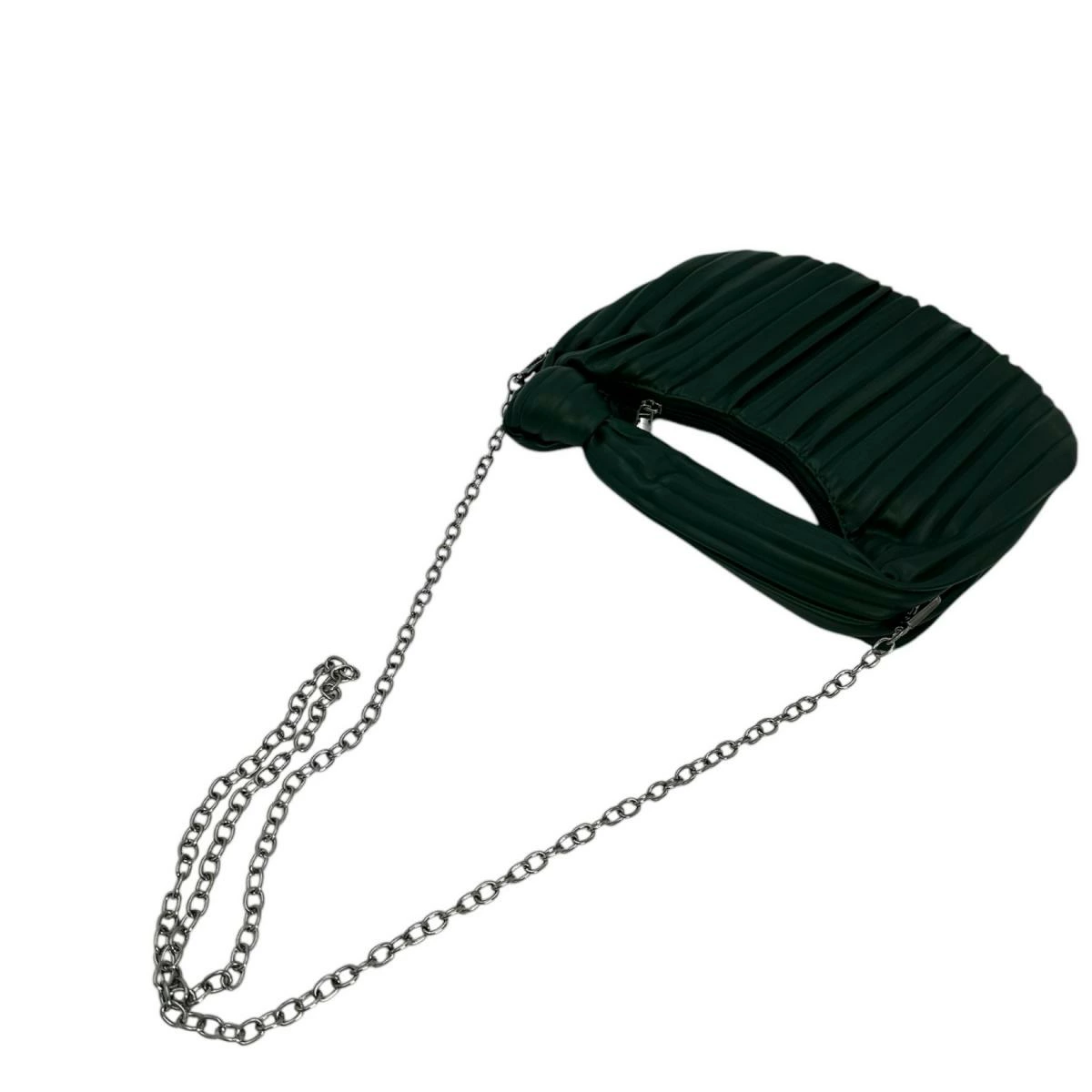 商品説明おしゃれなグリーンのハンドバッグ☆チェーンのストラップ付でショルダーバッグとしてもご使用いただけます♪