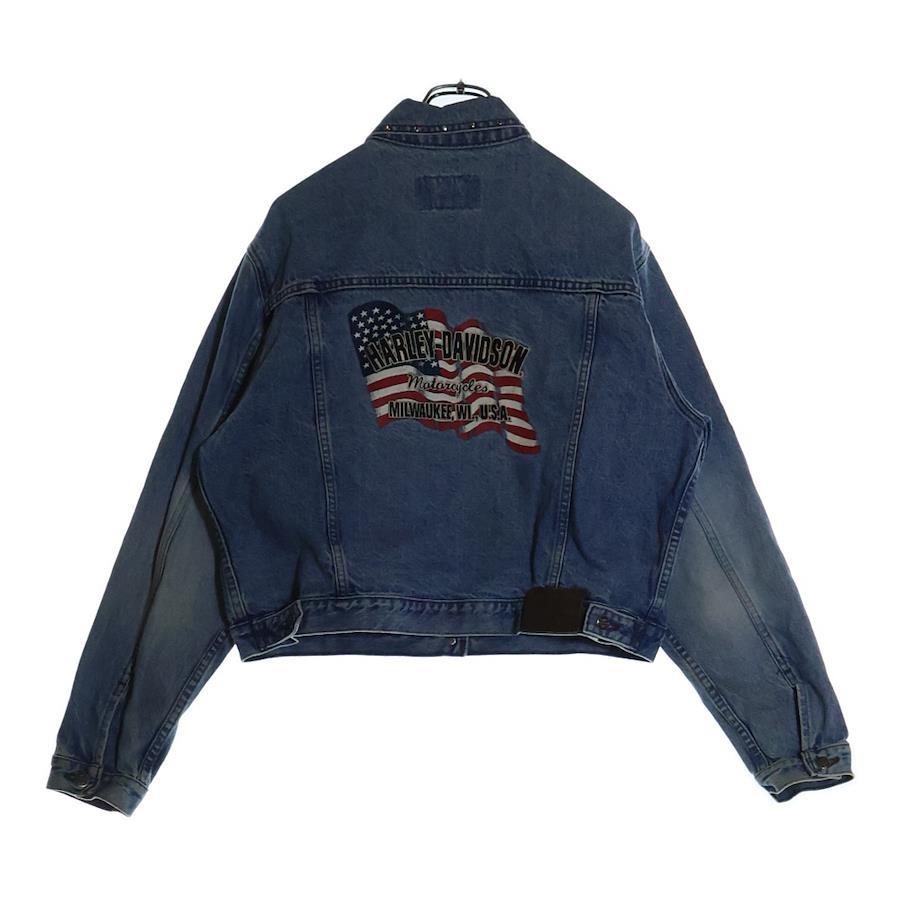 [モデル]バック刺繍 スタッズ装飾 デニムジャケット インディゴ