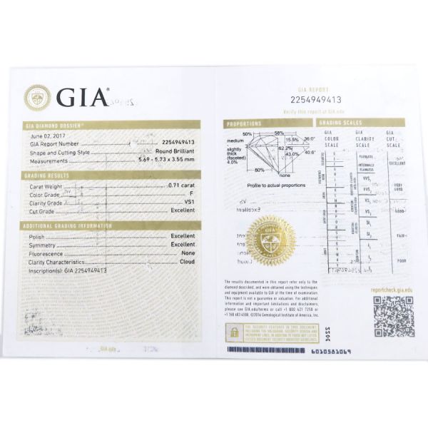 (素材)Pt950 (サイズ)#18.5 (ダイヤグレード)D0.71ct / F-VS1-3EX (ダイヤ直径)約5.6mm (リング幅)最大約2.7mm / 最小約1.8mm (総重量)約6.5g