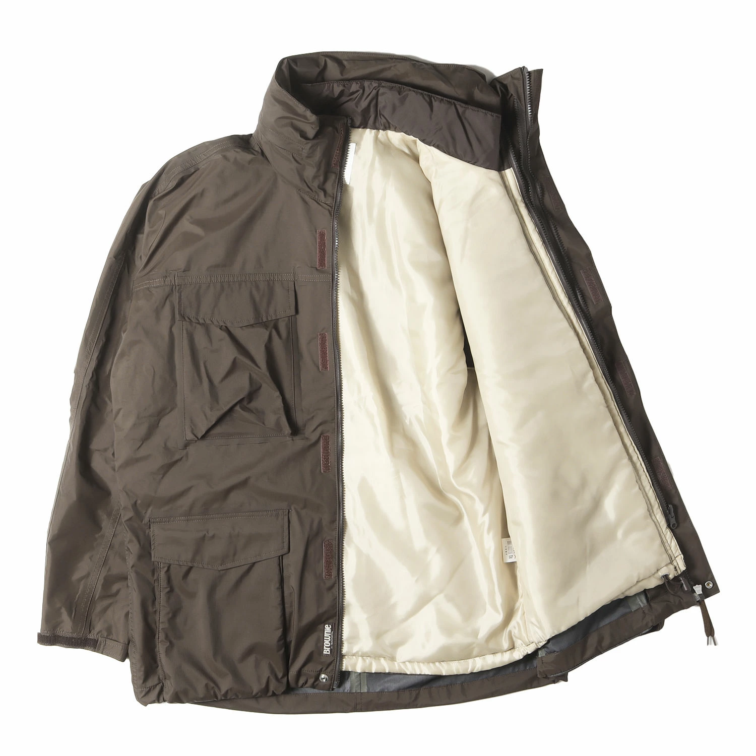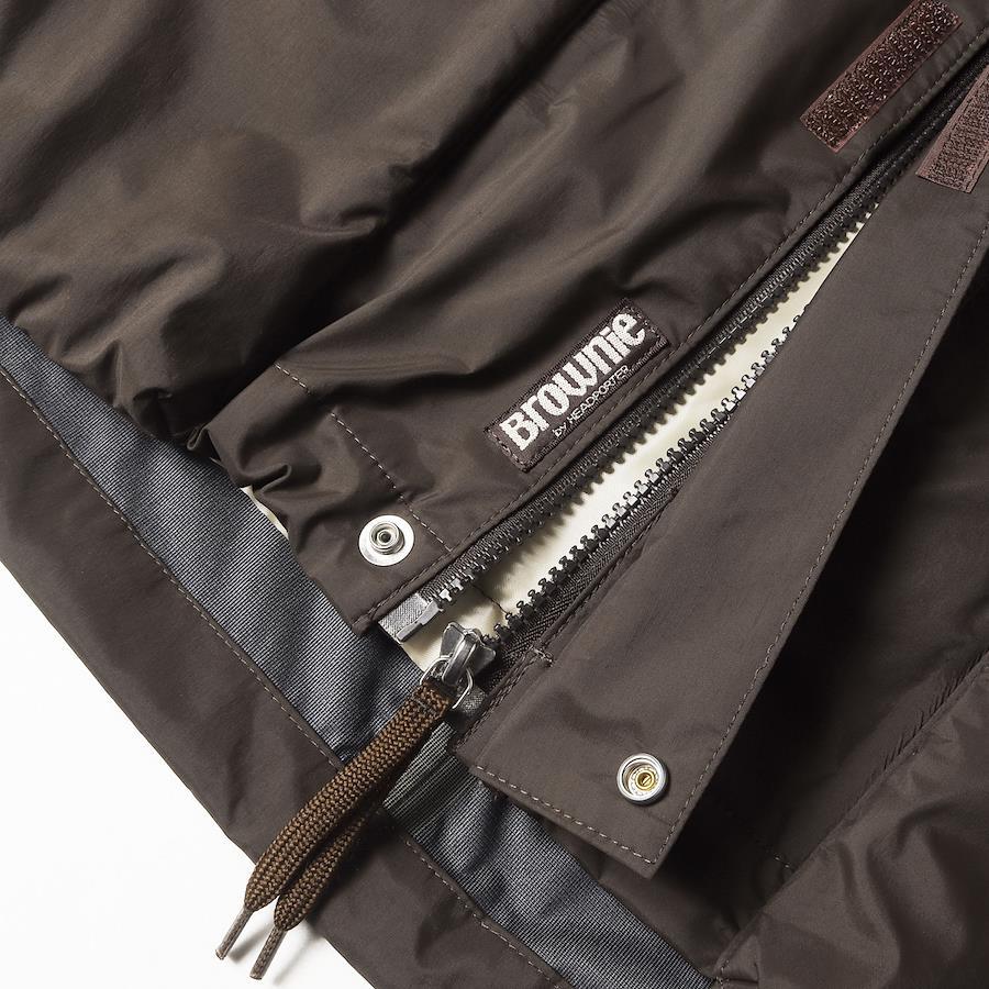 | 商品説明 | ・藤原ヒロシ着用の人気モデル ・”BROWNIE”シリーズ ・M-65風デザイン ・ライナー中綿ベスト付属 ・防水浸透性のある2レイヤーナイロン素材 ・裏面シームシーリング仕様 ・収納フード付き ・脇下 ベンチレーションジップ |