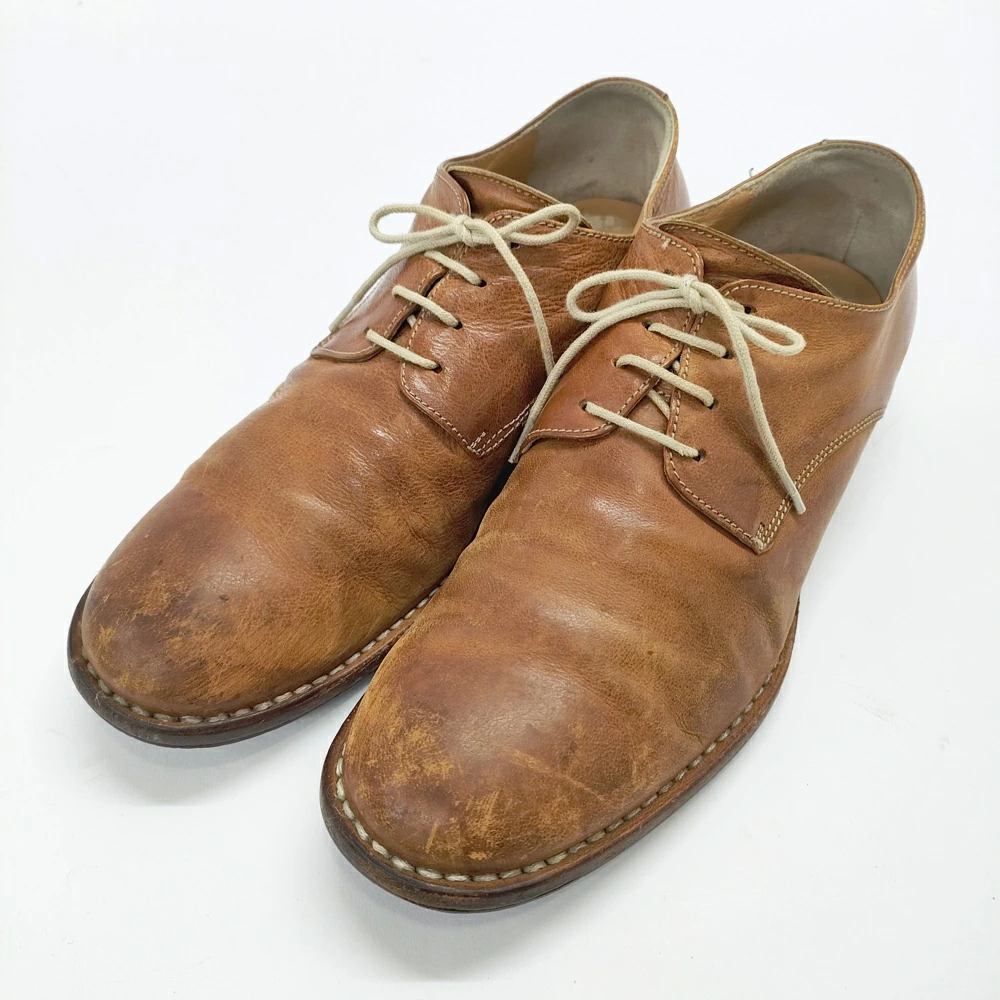 | 状態 | 【参考ランク】B 【全体の印象】 使用感が見受けられますが、使用する上で支障となるような大きなダメージではないと思います。 【状態】 シワ、使用感、スレ、汚れ 【風合い】 色ムラ 【細かく見ると】 アウトソールに汚れ、かかとにすり減りあり インソールにスレ汚れ、指跡あり アッパーに履きジワあり。また全体的に色ムラやスレ、シミが見られますが、元々の風合いや加工によるものか使用によるものか判断できません。 【商品特性について】 ※元々風合いのある素材を使ったブランドの為、多少のダメージ、ユーズド感はご了承下さい。商品特性をご理解頂ける方のご購入をお待ちしております。 ※保管時にできた折りジワ、繊維付着などはご容赦下さい。 |