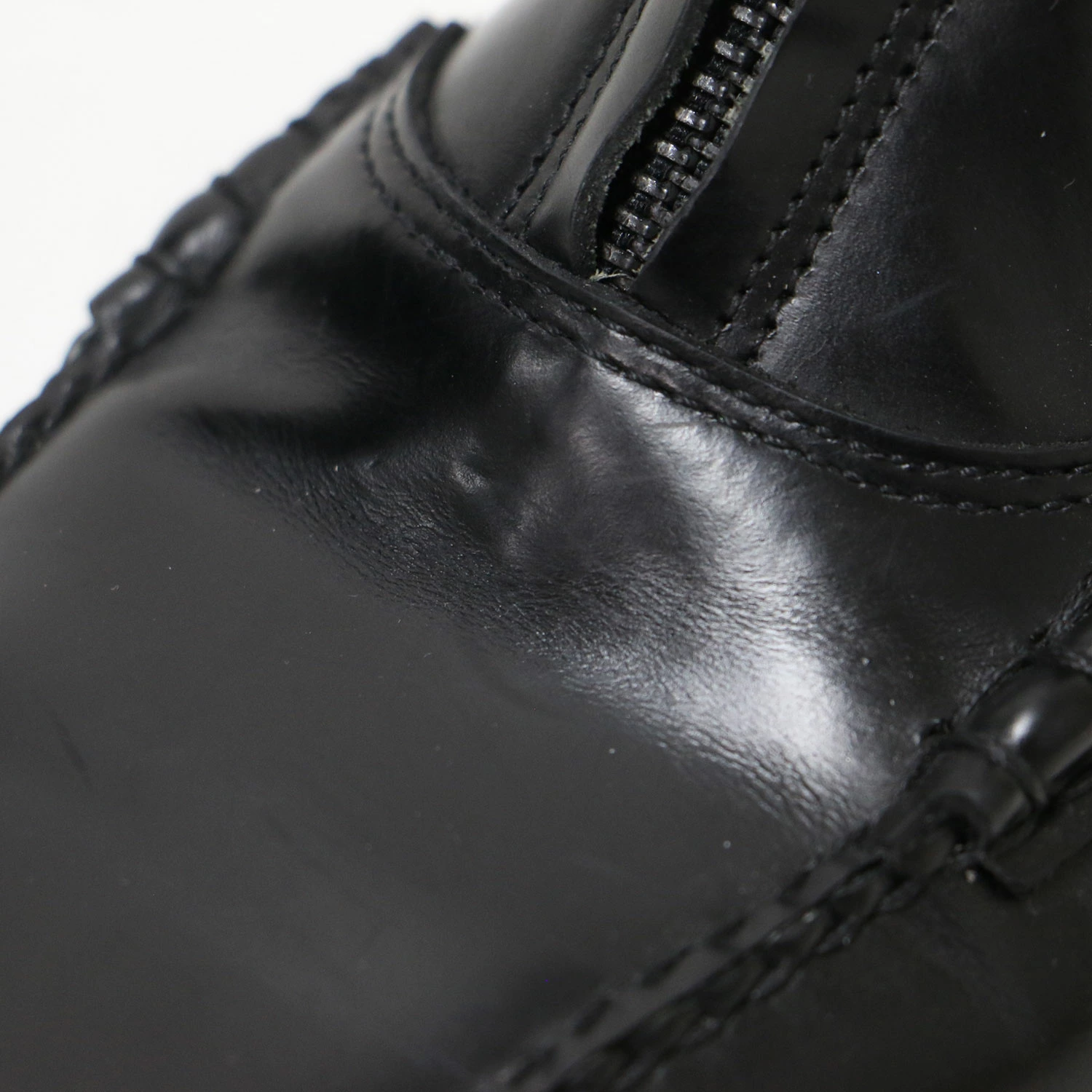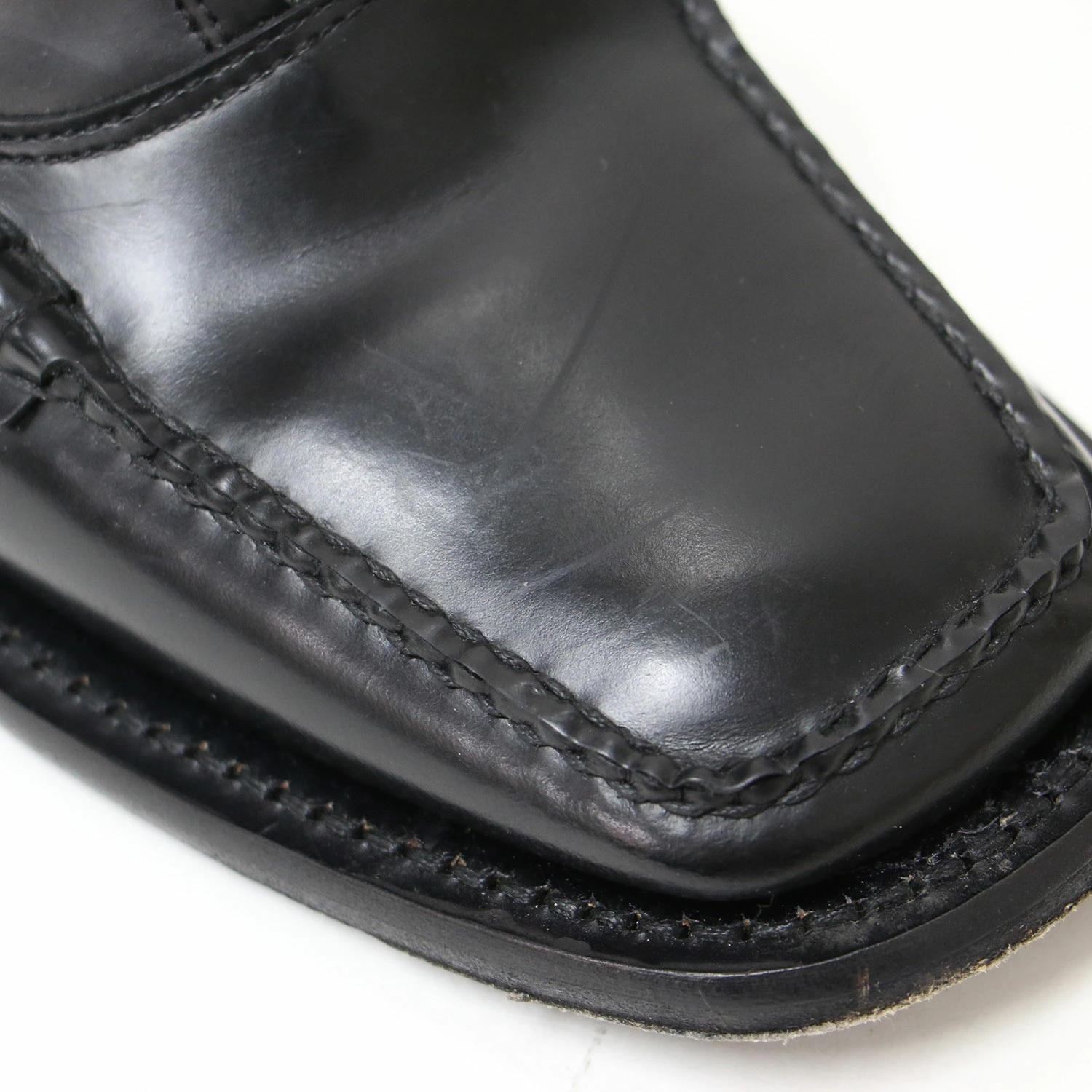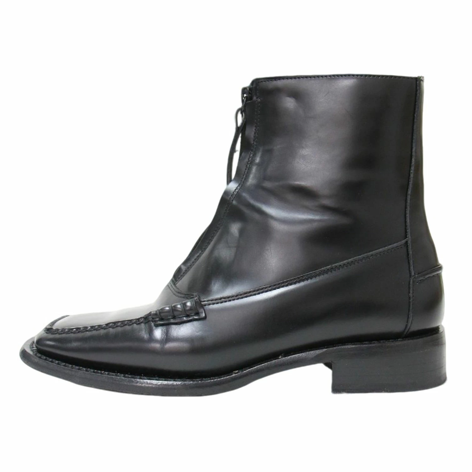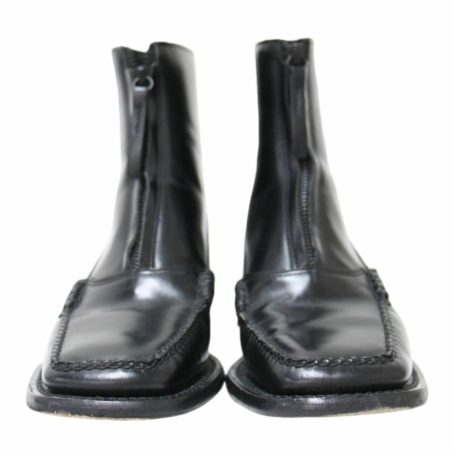 HEREU Black Mallera Zip-Up Leather Short Boots, Size 38 (25.0cm), Front Zipper, Square Toe, Made in Spain, Women's, Pre-Owned, K4614