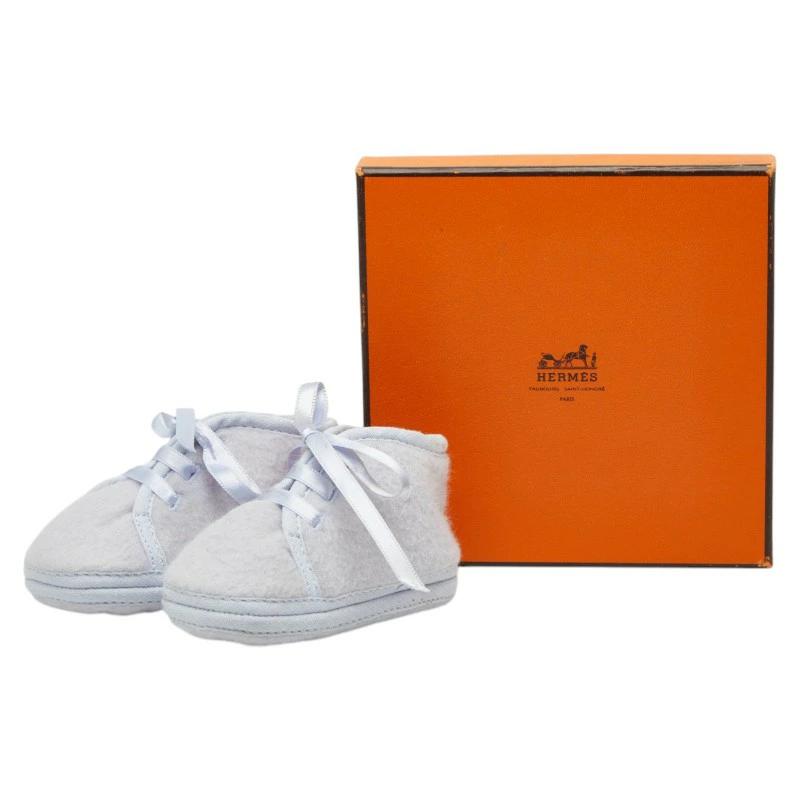 - エルメス ベビーシューズ ファーストシューズ グレー ライトブルー ウール アンゴラ レディース HERMES 【中古】