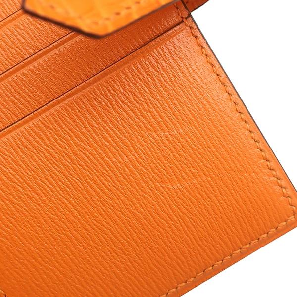 エルメス HERMES ベアンコンパクト ベアン 二つ折り財布 アリゲーターマット オレンジミニアン クロコ シルバー金具 K刻印(2025年製) - レディース 【箱】定番 人気 美品 【中古】