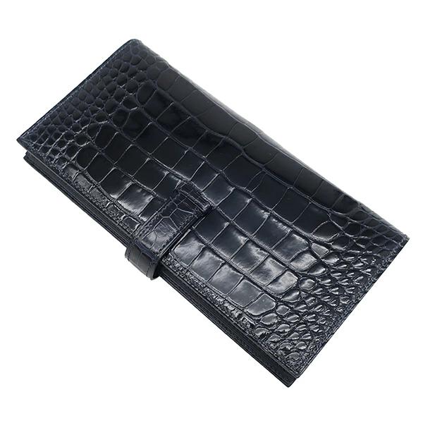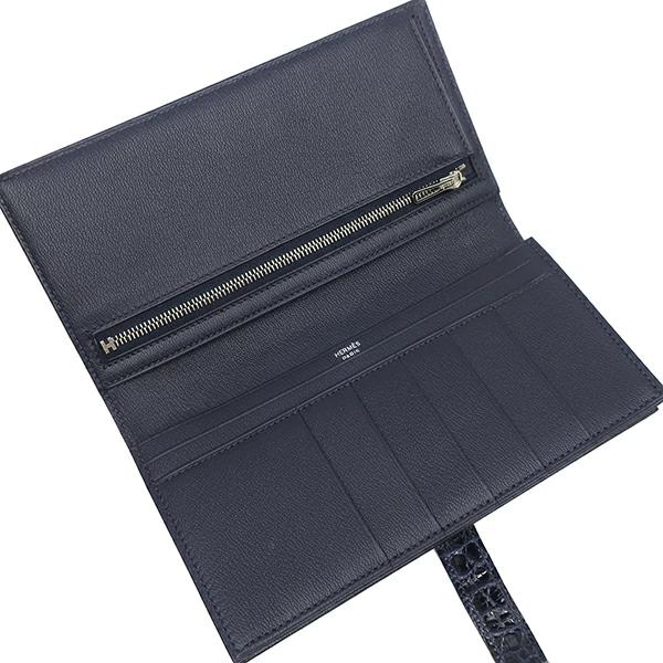 エルメス HERMES ベアンスフレ ベアン 長財布 アリゲーター ブルーマリン 紺 クロコ 二つ折り財布 シルバー金具 X刻印 - レディース 【箱】定番 人気 美品 【中古】