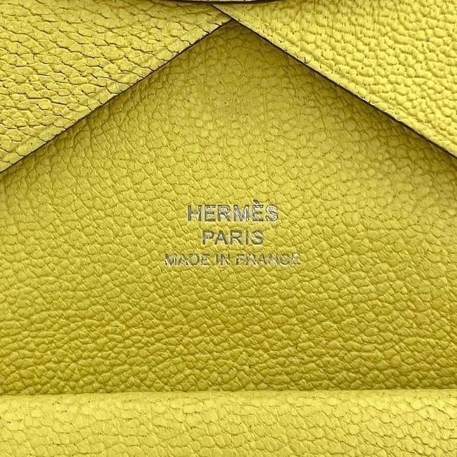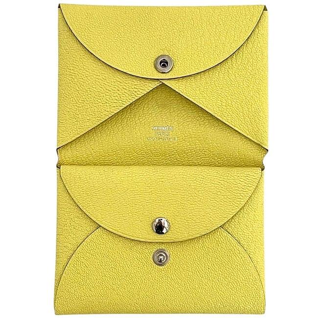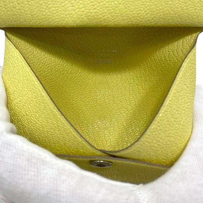 エルメス 二つ折り 財布 カルヴィ デュオ f-23963 イエロー リモンチェッロ 美品 小銭入れ レザー シェブルミゾル 中古 B刻印 2023年 HERMES ホック コンパクト コインケース 札入 カードケース ヴィンテージ レモン 人気 定番 黄色 ブランド 本物 鑑定済み