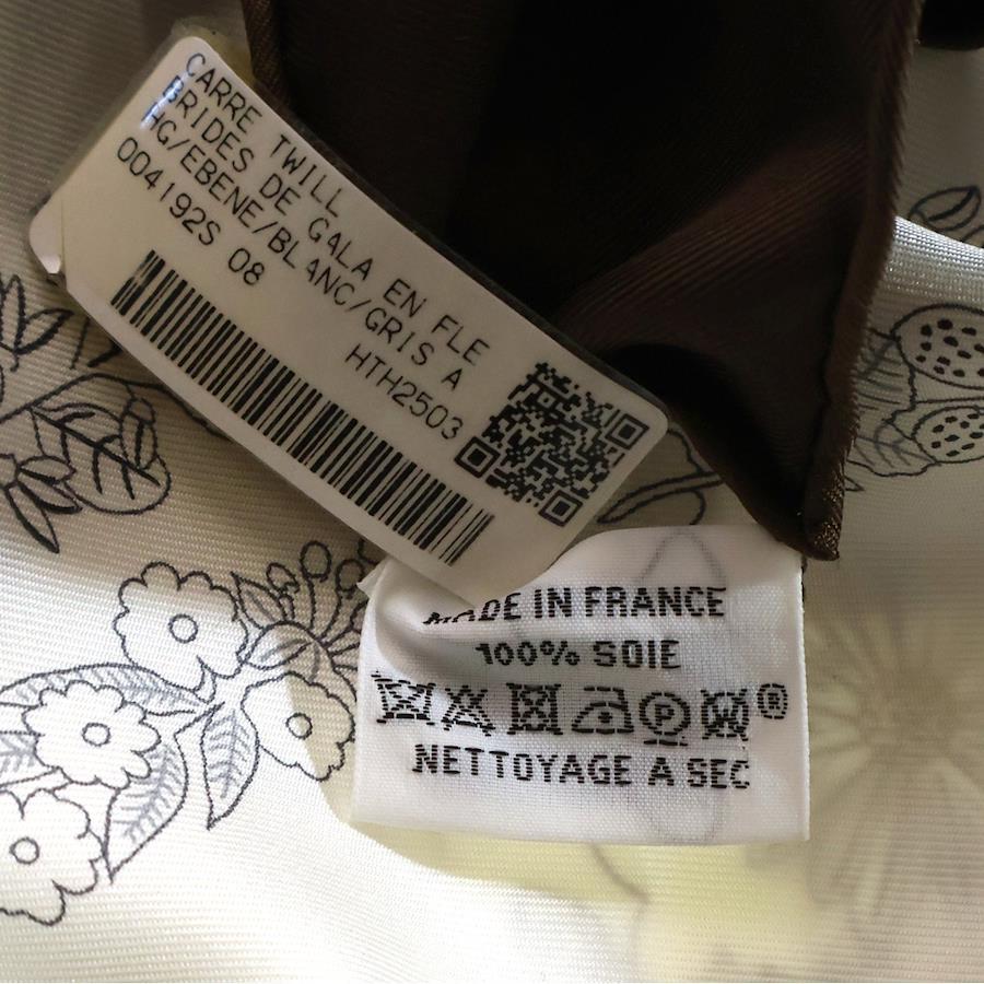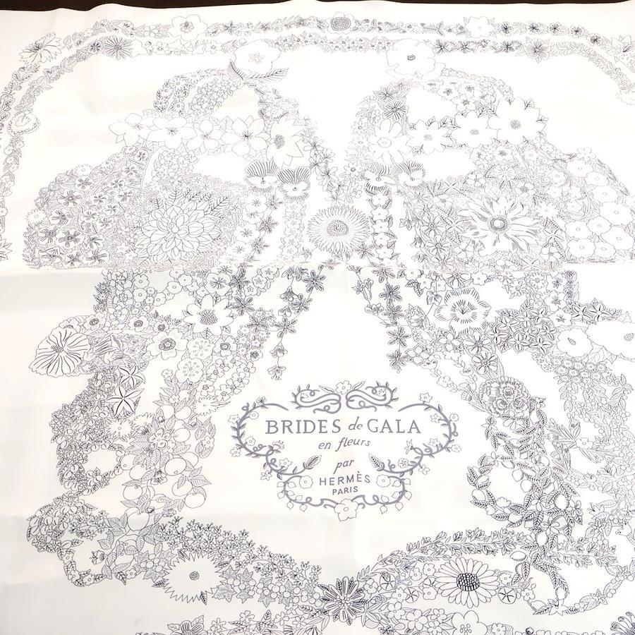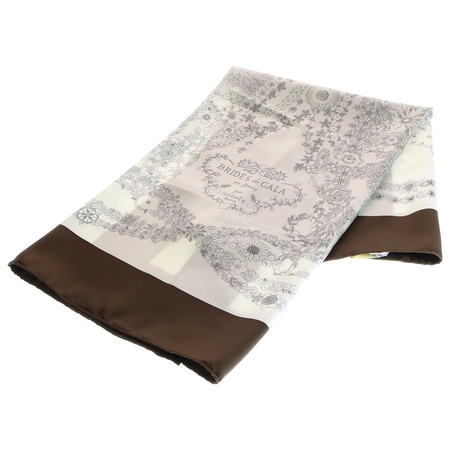 [モデル]カレ90 ブリッド・ドゥ・ガラ・アン・フルール フラワープリント シルク スカーフ ホワイト/ブラウン