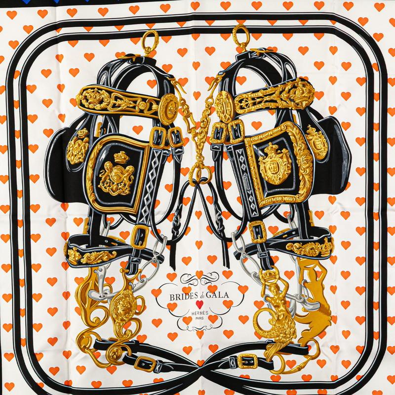■商品情報[管理番号]1-0226456[ブランド]エルメス(HERMES)[対象]レディース[カラー] ブラック マルチカラー[シリーズ]BRIDES de GALA LOVE 式典用の馬勒[ライン]カレ90[素材]シルク[サイズ]W約89cmxH約88cm[付属品]保存箱[状態・コンディション]ランク A