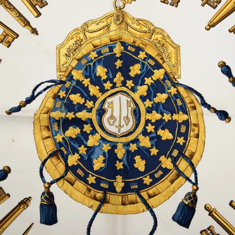 Hermès Carré 90 LES CLES Key Scarf, Blue, White, Gold, Silk, Women's, Pre-owned