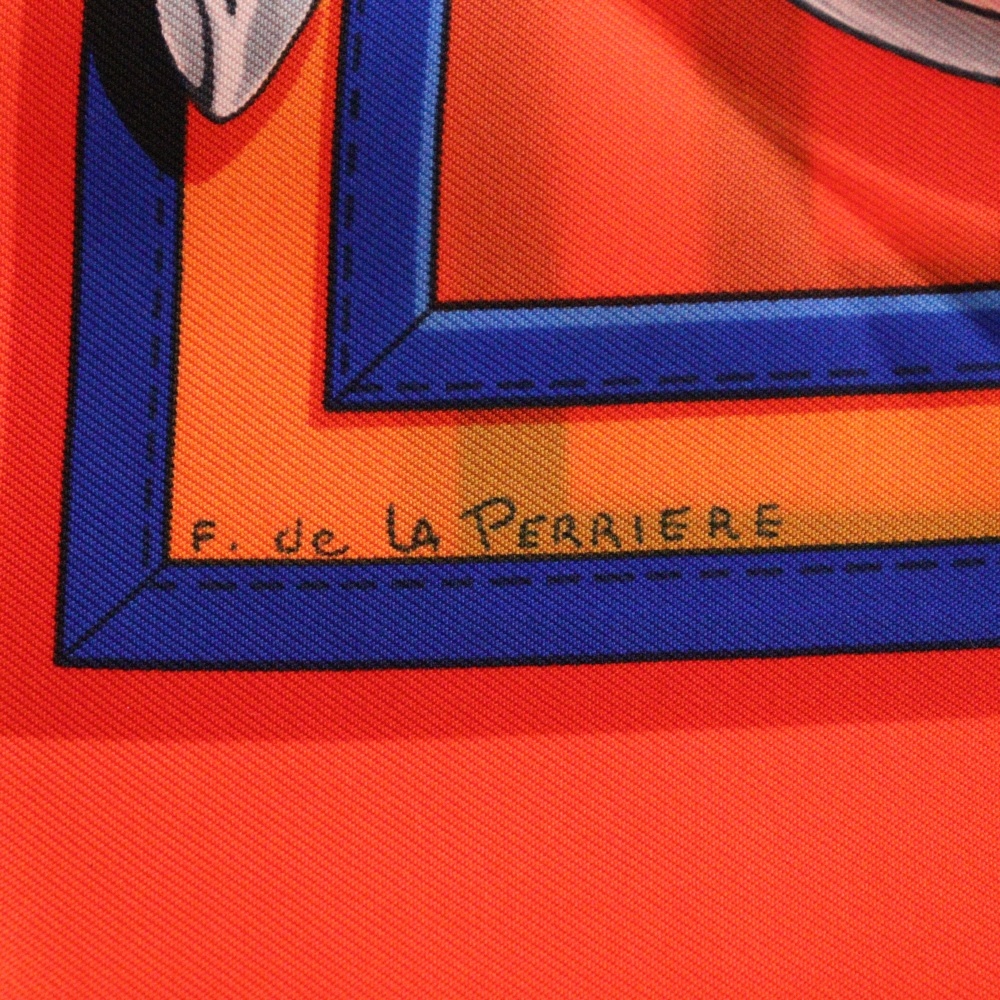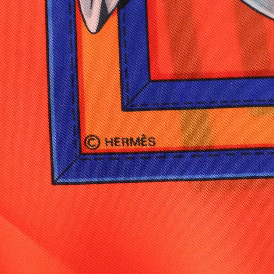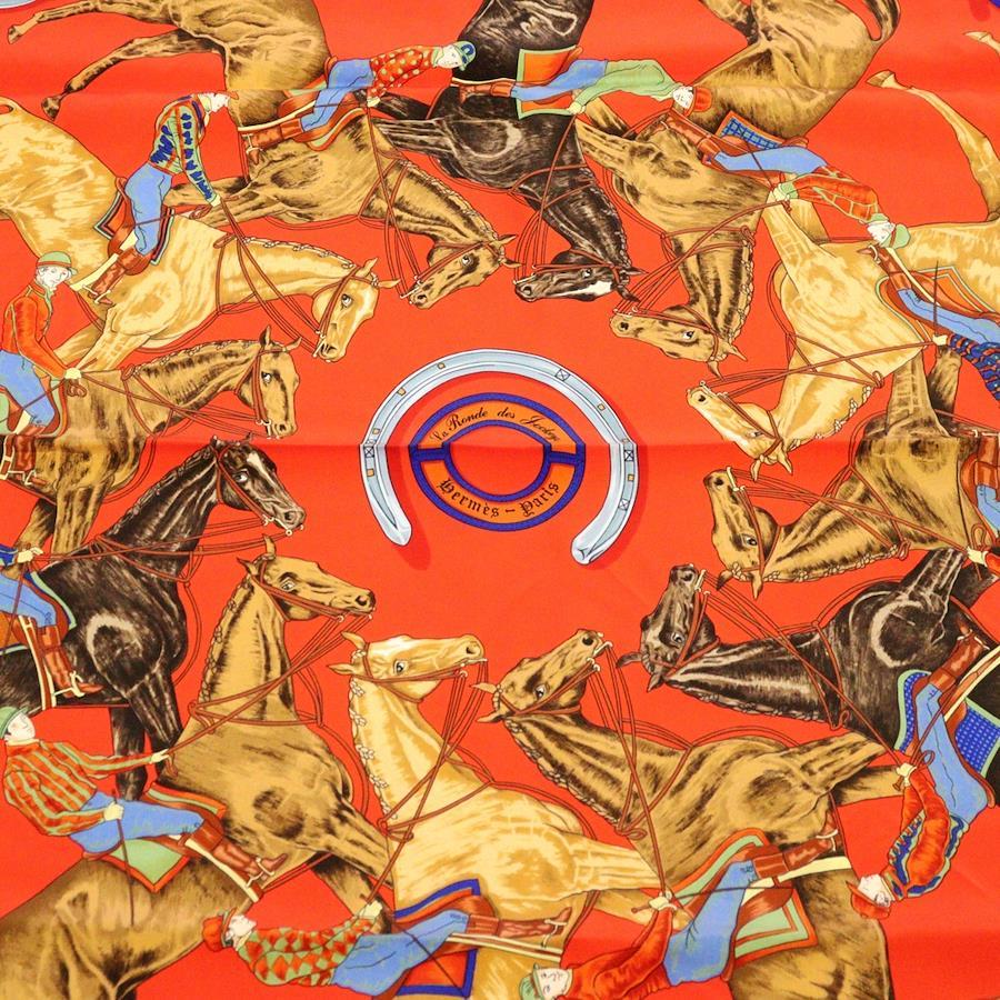 [モデル]カレ90 スカーフ ホース オレンジ レッド シルク