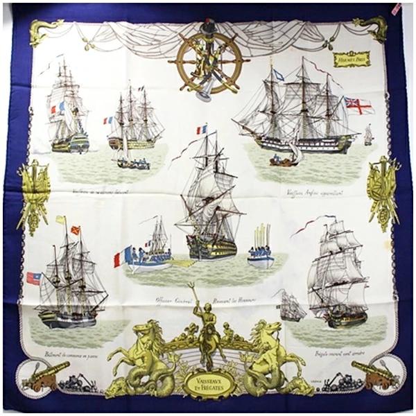 | 商品名 | エルメス スカーフ カレ90 『VAISSEAVX ET FREGATES』 中古 BランクHERMES |