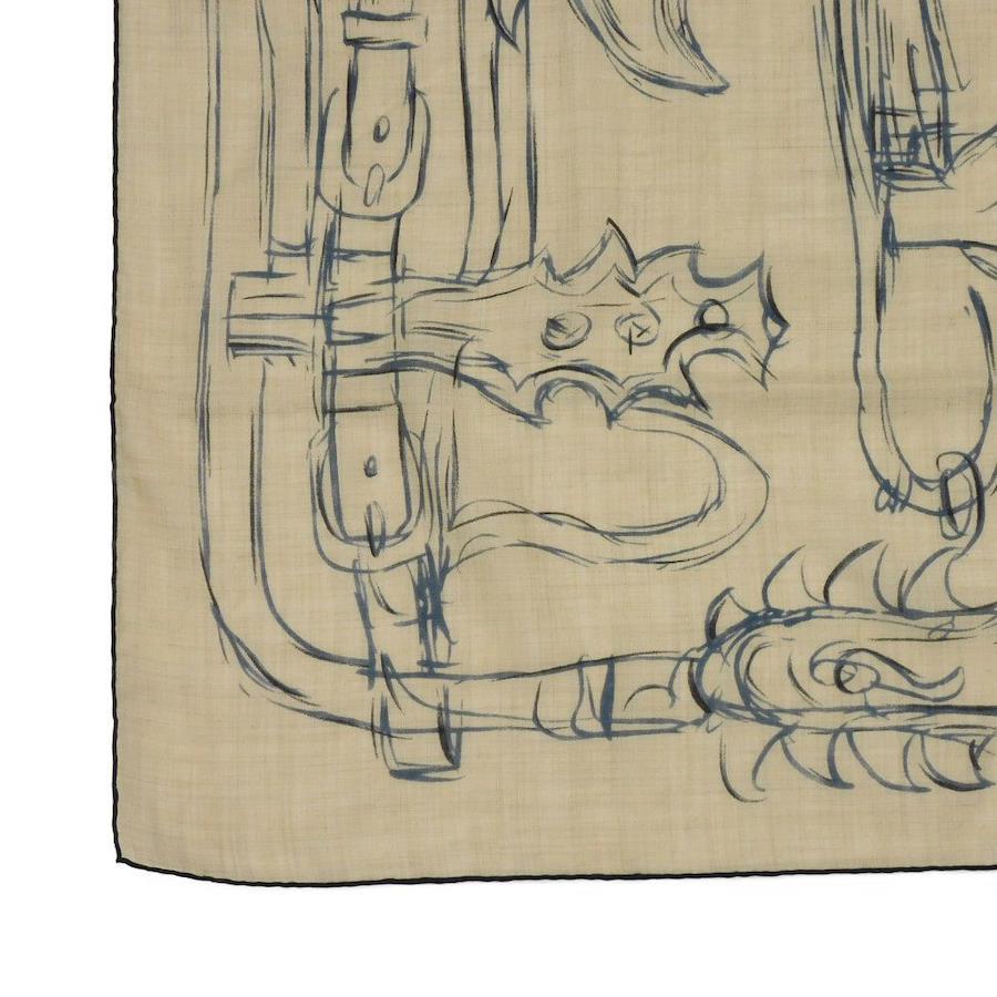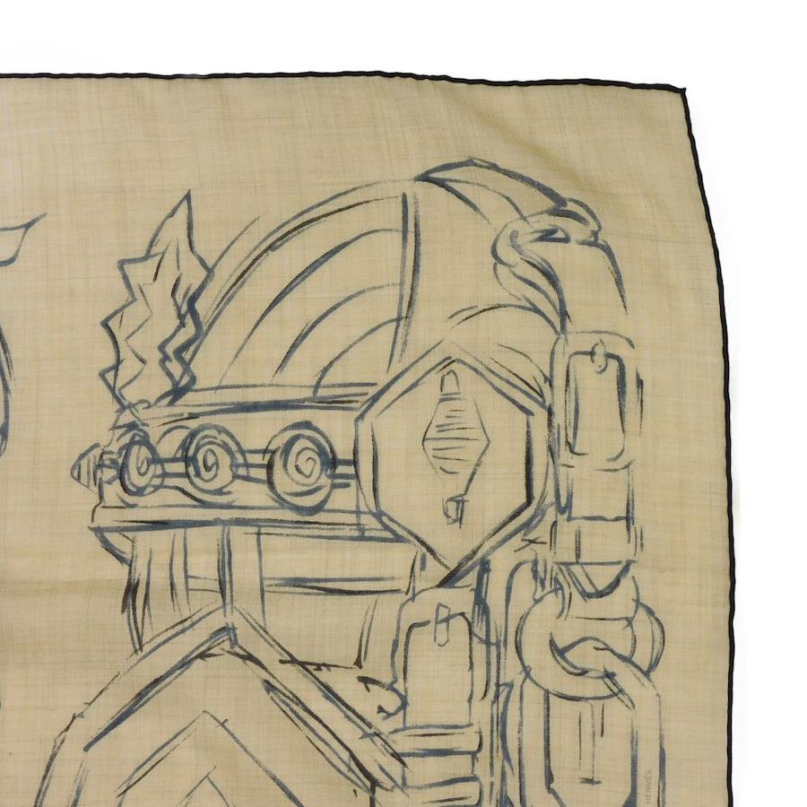 Hermès Cashmere Scarf, Beige, 2019 Spring/Summer 2023, Bridle, Sketch, Drawing, "Bride & Destin" Sketch, Cashmere, Beige, Men's/Women's, Elegant, High-Quality, Sophisticated, Brand Name [Pre-owned]