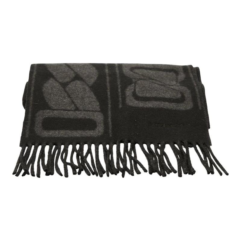 - エルメス マフラー ブラック グレー カシミヤ メンズ HERMES 【中古】