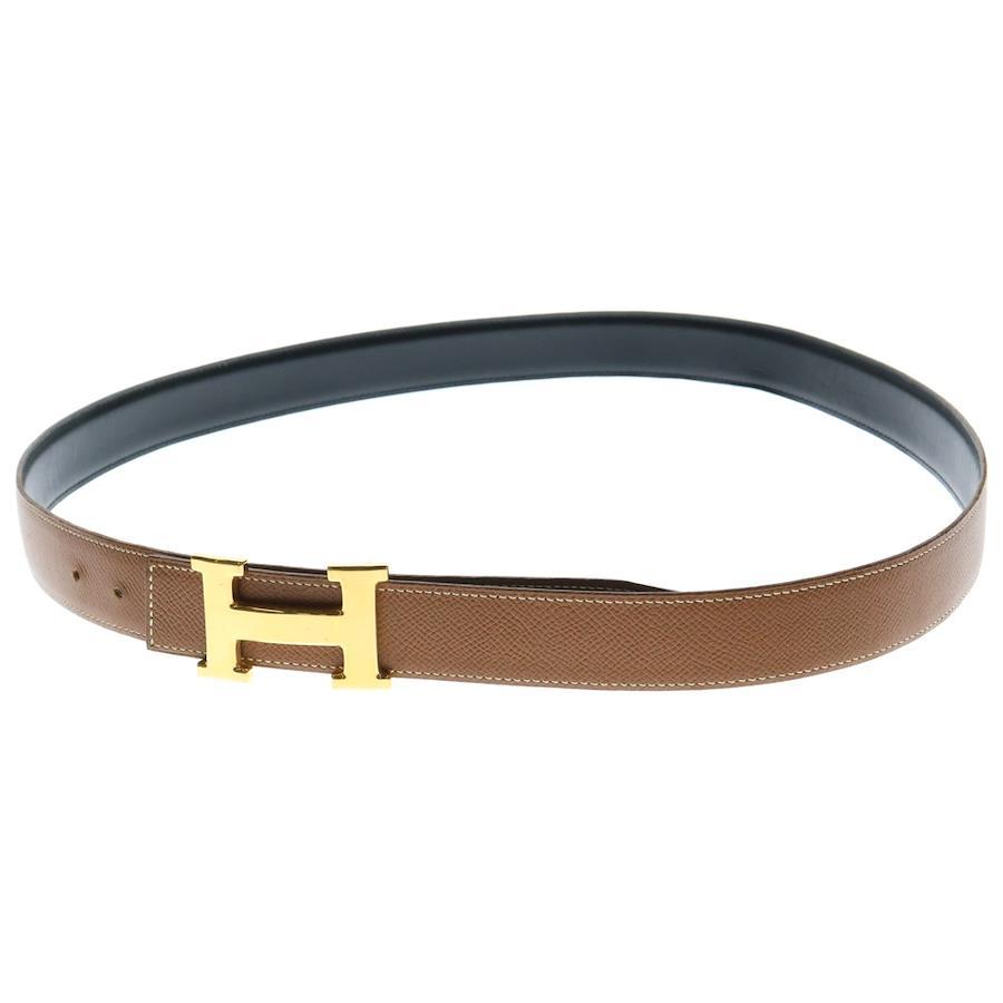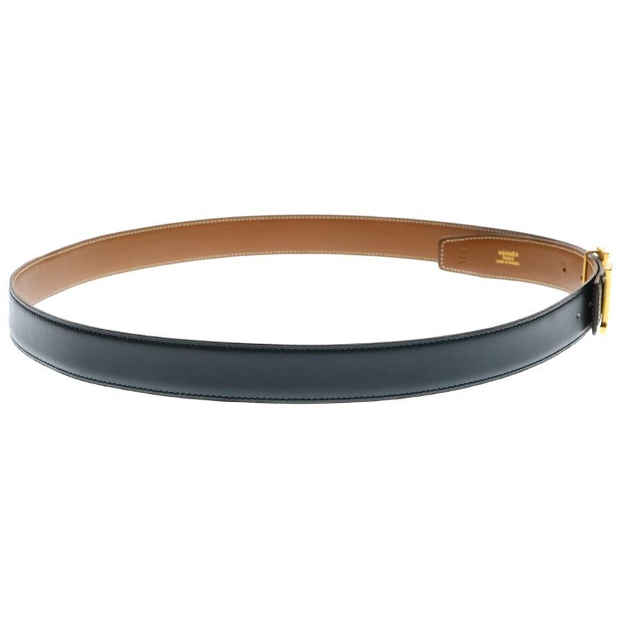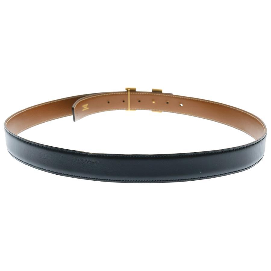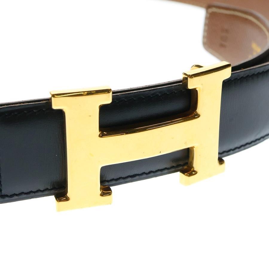 [モデル]コンスタンスベルト Hバックル リバーシブル ボックスカーフ GD金具 ブラック/ブラウン 〇V刻印