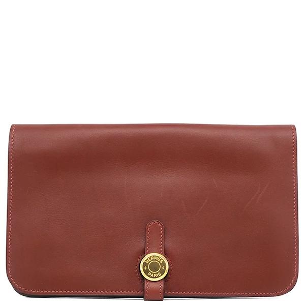 エルメス HERMES ドゴンデュオ ドゴンGM ドゴン 長財布 ヴォーガリバー ルージュアッシュ 赤 ゴールド金具 □F刻印 - レディース 【箱】 【中古】