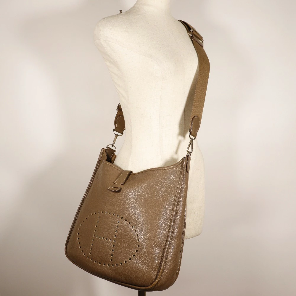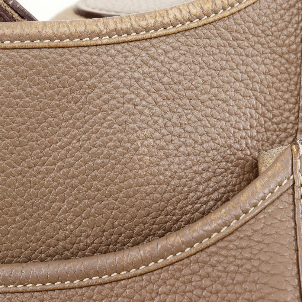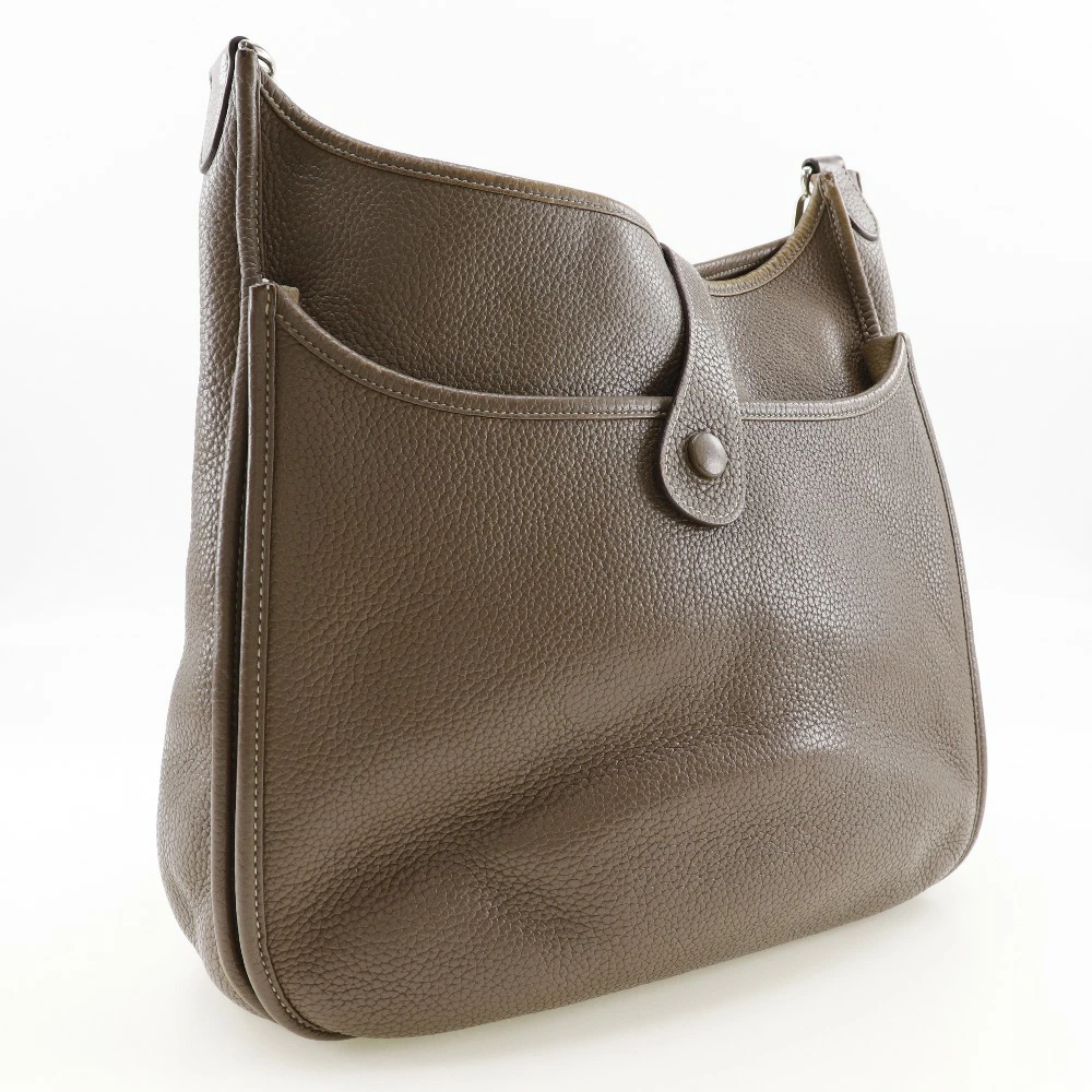 Hermès Evelyne 3 GM Shoulder Bag in Taurillon Clemence Etoupe Leather, Made in France, 2013, Silver Hardware, Crossbody, A5 Snap Buttons, Women's, Pre-owned, B-Rank