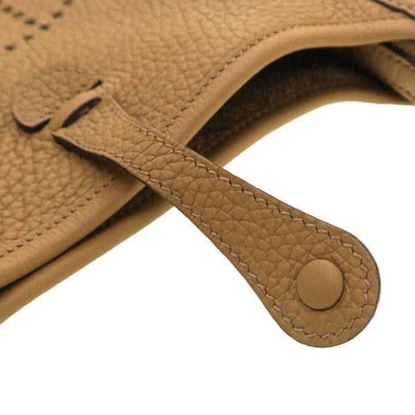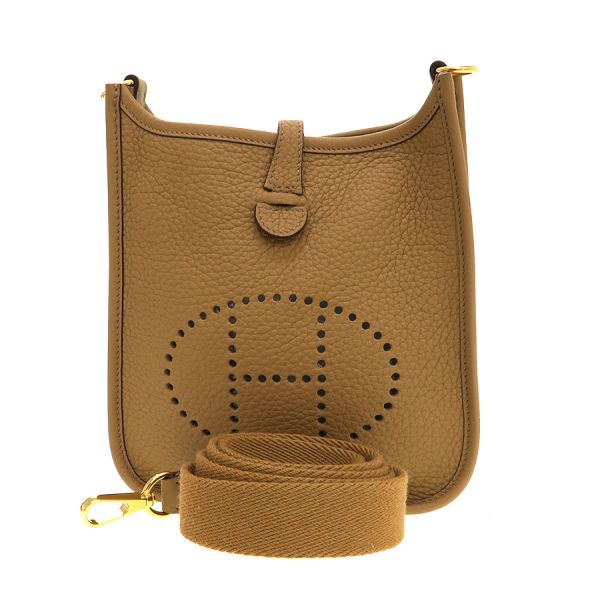 エルメス エヴリンTPM参考色:ビスキュイ参考素材:トリヨンクレマンス金具:ゴールド刻印:B刻印(2023年製)付属:ショルダーストラップ、保存袋普段使いから旅先でのサブバッグとしても活躍してくれる斜め掛けバッグ『エヴリンTPM』の入荷となります。 キャッシュレス時代の今日にぴったりなスッキリとしたコンパクトなサイズ感となり、お財布やスマートフォンといった生活必需品の持ち運びにピッタリなバッグとなります。上品な雰囲気溢れるカラーでオールシーズン活躍してくれるアイテムとなります。状態はAランクとなっており、本体の型崩れ、表面の僅かなスレ感、ショルダーのスレ感、金具部分の小傷、内部のスレ感、毛羽立ち感を感じる程度で目立った使用感ダメージは抑えられた印象です。是非いかがでしょうか?