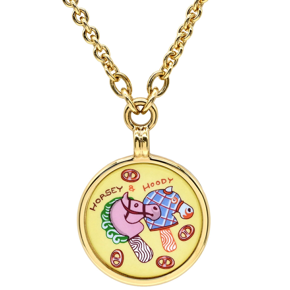 エルメス HERMES メダイユ ファニー アイスクリーム メダイユ ネックレス エナメル GP イエロー×マルチカラー 馬 シェーヌダンクル ゴールド金具 - レディース 【箱】定番 人気 美品 【中古】