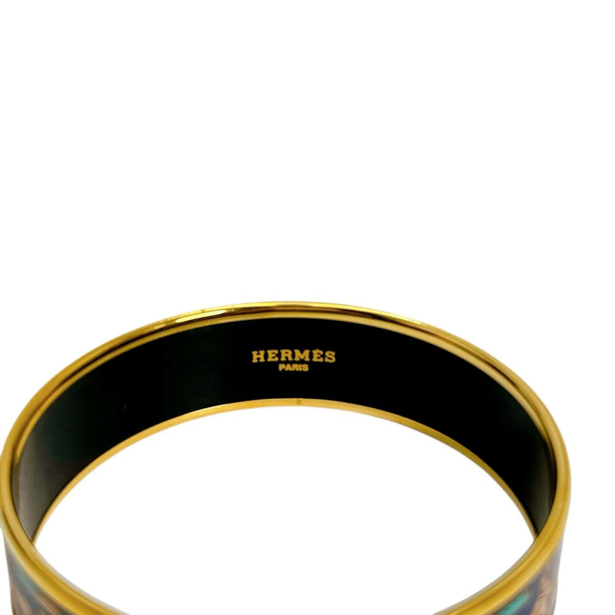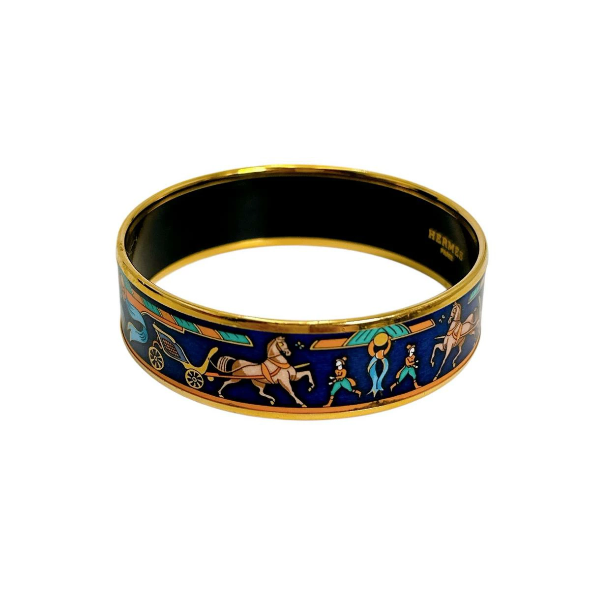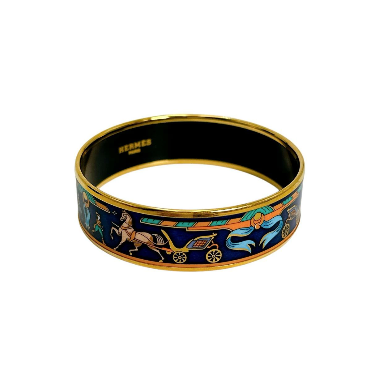 Hermès GM enamel bangle bracelet in blue and gold. [SS] [Pre-owned]