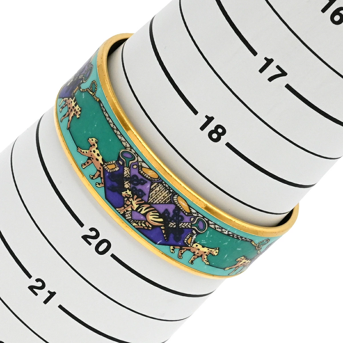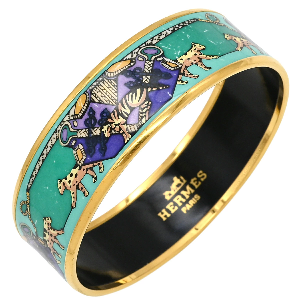 エルメス HERMES エマイユ GM エマイユ バングル 七宝焼き グリーン×マルチカラー アニマル柄 ヒョウ トラ ゴールド金具 - レディース 【箱】定番 人気 美品 【中古】