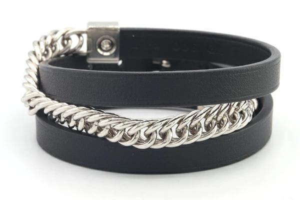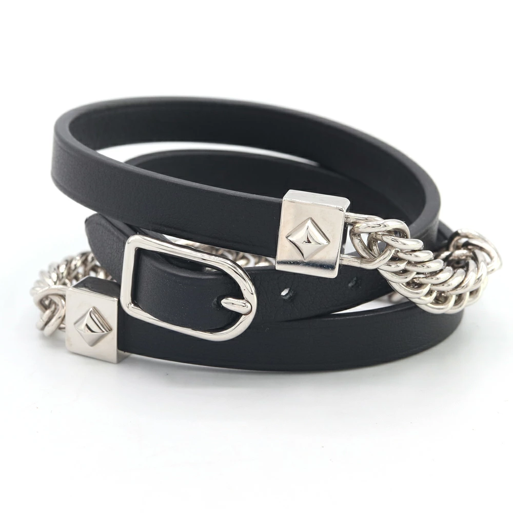 Hermès Gourmet Eskettle Triple Tour Bracelet, Black, Silver Hardware, Leather, Metal, Z Stamp, 2021, Pre-owned, Triple Bangle, Accessory, Women's, HERMES