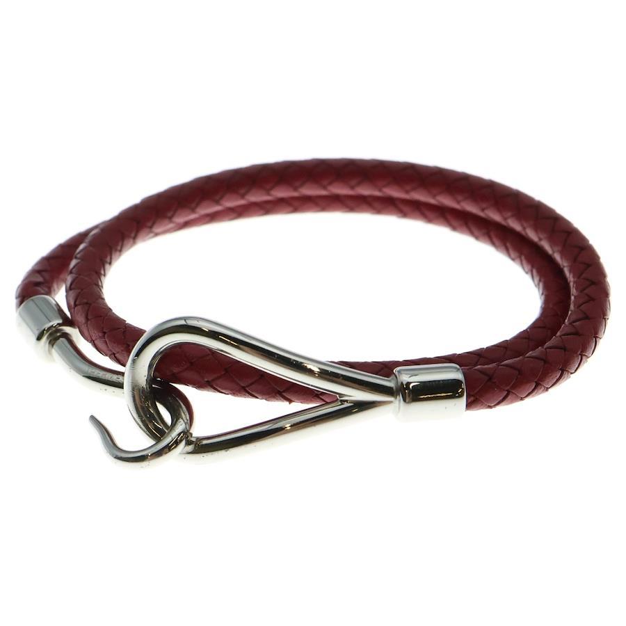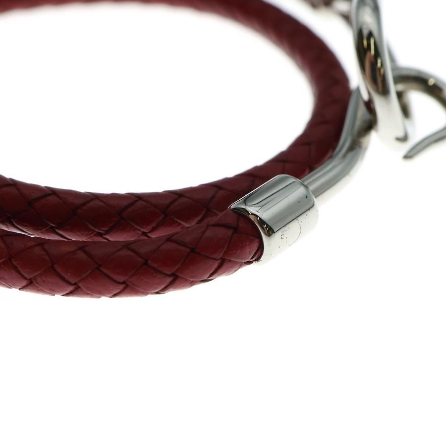 [モデル]ジャンボ イントレチャート レザー ブレスレット シルバー金具 レッド