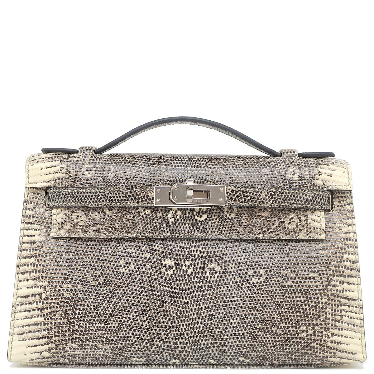 Hermès Kelly Pochette handbag in lizard ombré with silver hardware, mini bag with Y stamp. [Box] [Pre-owned]