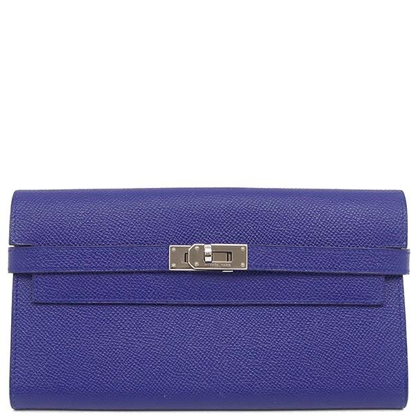 エルメス HERMES ケリーウォレット ロング ケリーウォレット 長財布 ヴォーエプソン ブルーエレクトリック 青 ショルダー シルバー金具 T刻印 - レディース 【箱】定番 人気 美品 【中古】