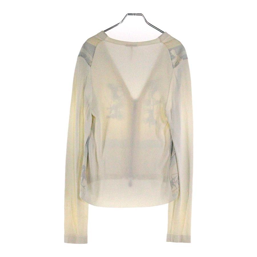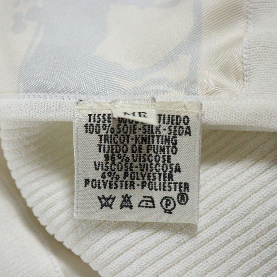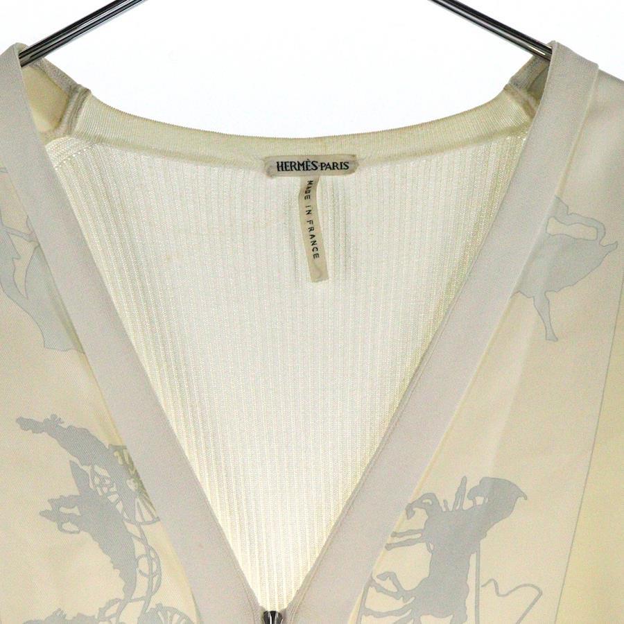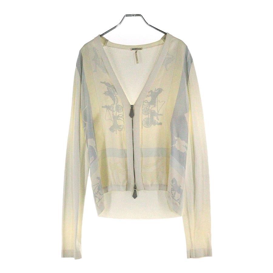 [モデル]マルジェラ期 馬車柄 シルクスカーフ ビスコース レーヨン ニット 切り替え ジップアップ カーディガン ホワイト レディース