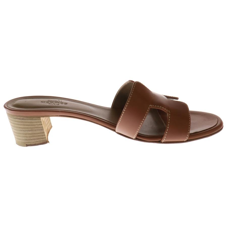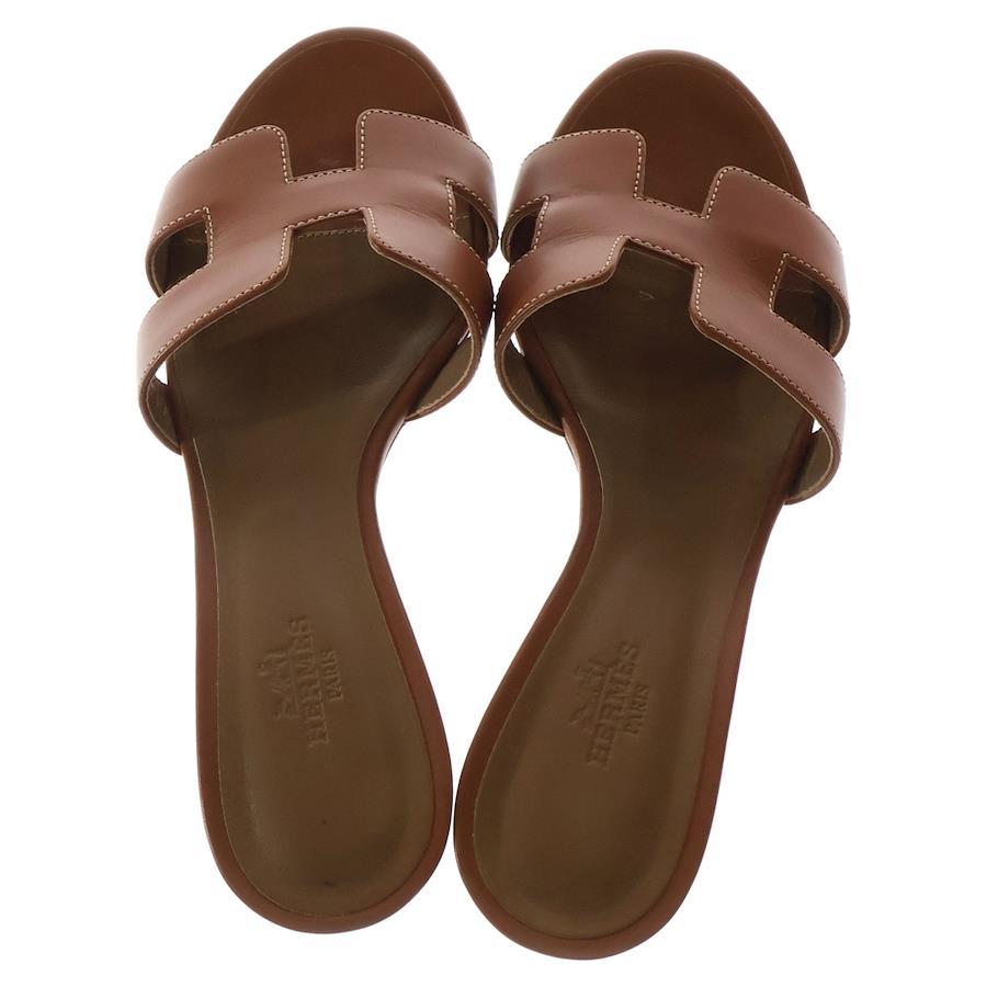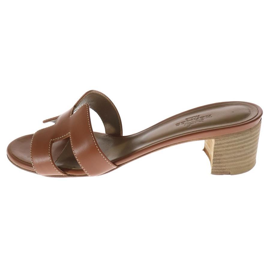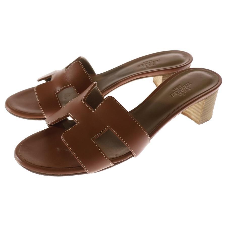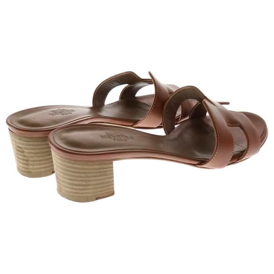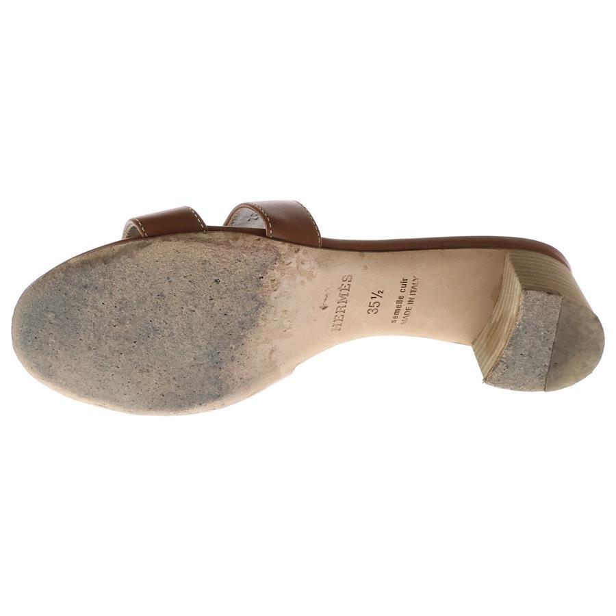 [モデル]オアジス Hロゴ レザー ヒール サンダル シューズ ブラウン レディース