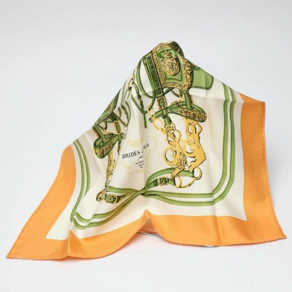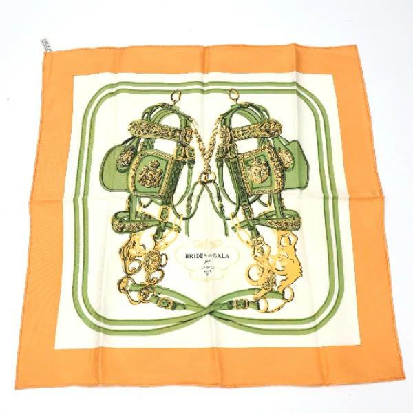 | スカーフHERMES ハンカチーフガウロッシュシルクツイル プチカレレディース カレ45オレンジ |