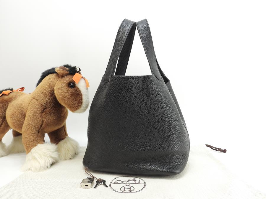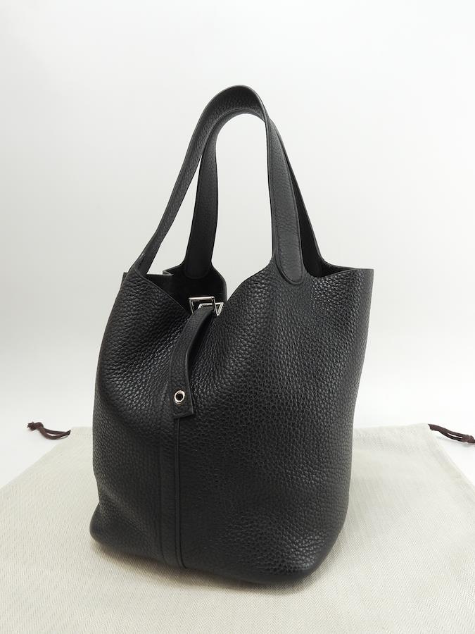 品名 : ピコタンロックMM (Picotin Lock 22) ピコタンロック22 ハンドバッグ トートバッグ トップハンドルバッグメーカー : エルメス (HERMES)型番・素材 : トリヨンクレマンスレザーライン・色 : ノワール(ブラック) シルバー金具参考定価 : 未確認サイズ : W22 x H22 x D17.5 x G35 cm製造番号 : Y刻総重量 : 790g 本体重量 : 610g付属品 : 写真の中に写っているものです
