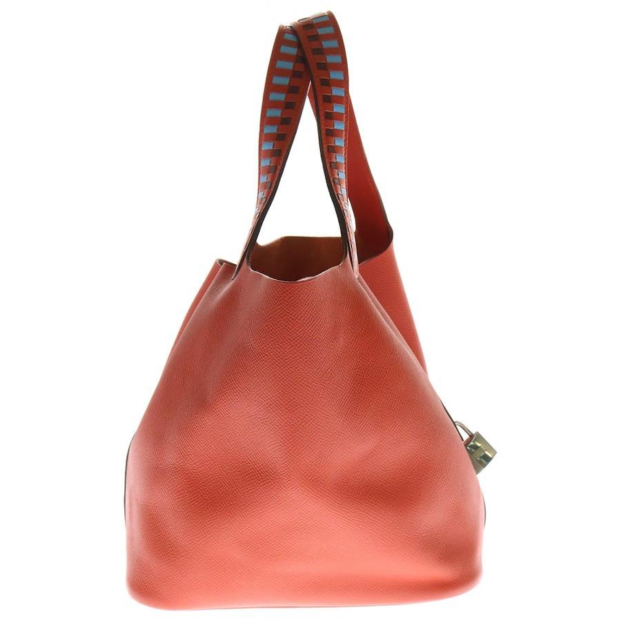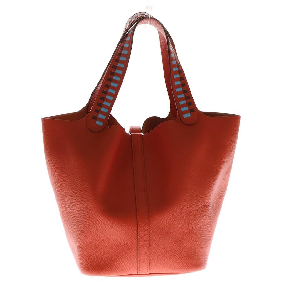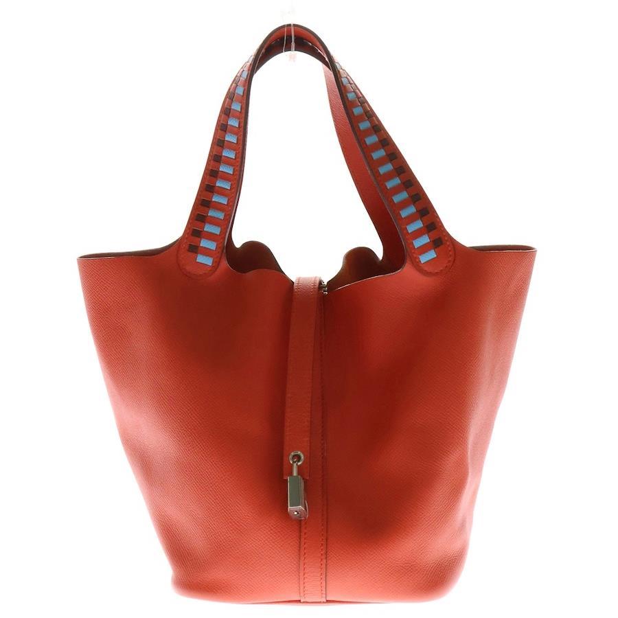 [モデル]ピコタンロックPM トレサージュ カプシーヌ ヴォーエプソン レザーハンドバッグ オレンジ レディース C刻印