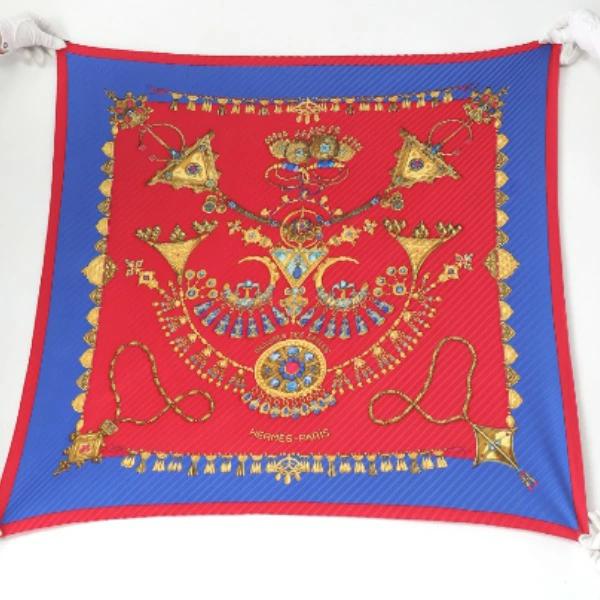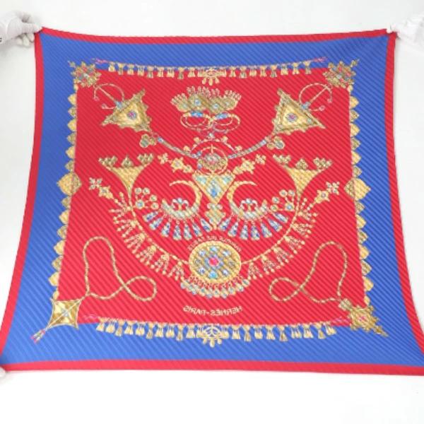 | スカーフHERMES プリーツスカーフ宝石柄 プリーツカレレディース レッド |