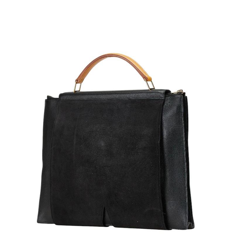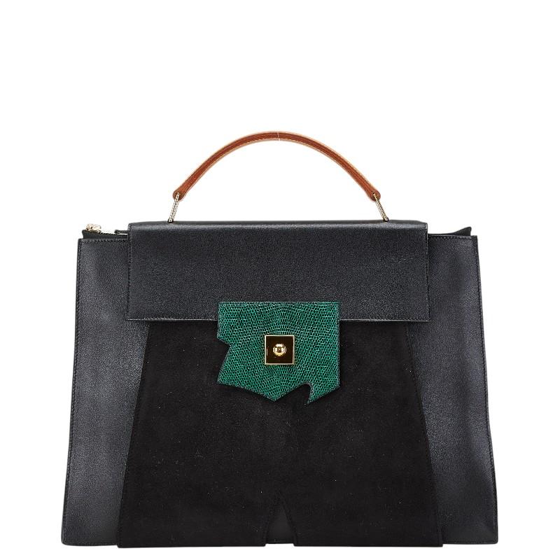 Hermès President Tote Bag, Black/Green Lizard, Vogue Lacquered Leather, Debris, Women's, Pre-owned