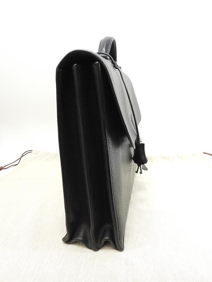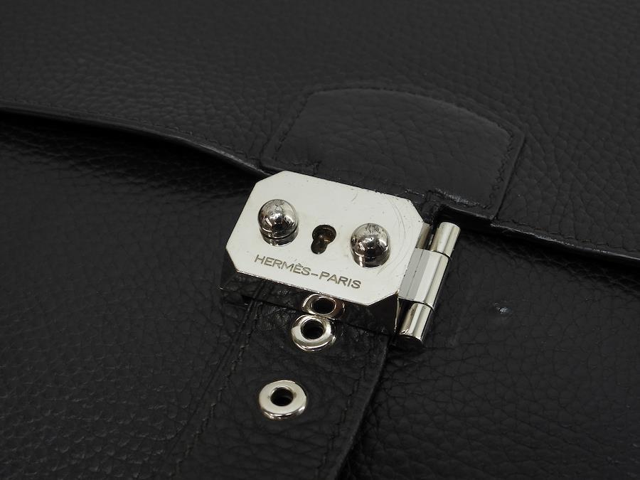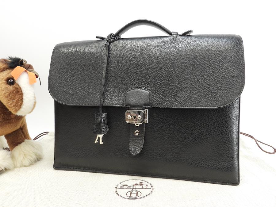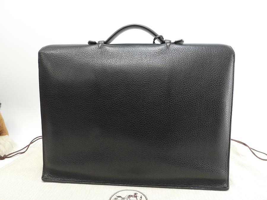 品名 : サックアデペッシュ38 (Sac a Depeches 38) 書類かばん ブリーフケース ドキュメントケース ビジネスバック 書類カバンメーカー : エルメス (HERMES)型番・素材 : フィヨルドレザーライン・色 : ノワール(ブラック) シルバー金具参考定価 : 約104万円サイズ : W38.5 x H28 x D12 x G15 cm製造番号 : □I刻総重量 : 2040g 本体重量 : 1820g付属品 : 写真の中に写っているものです