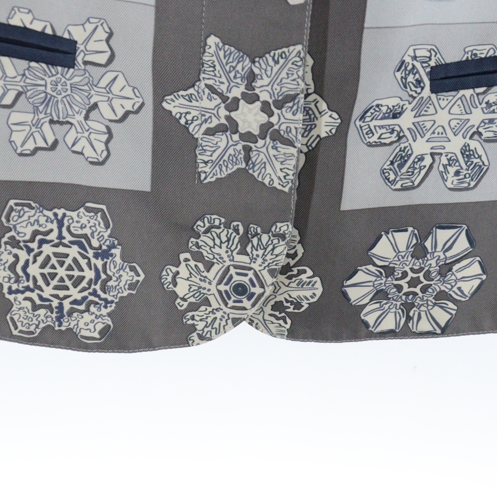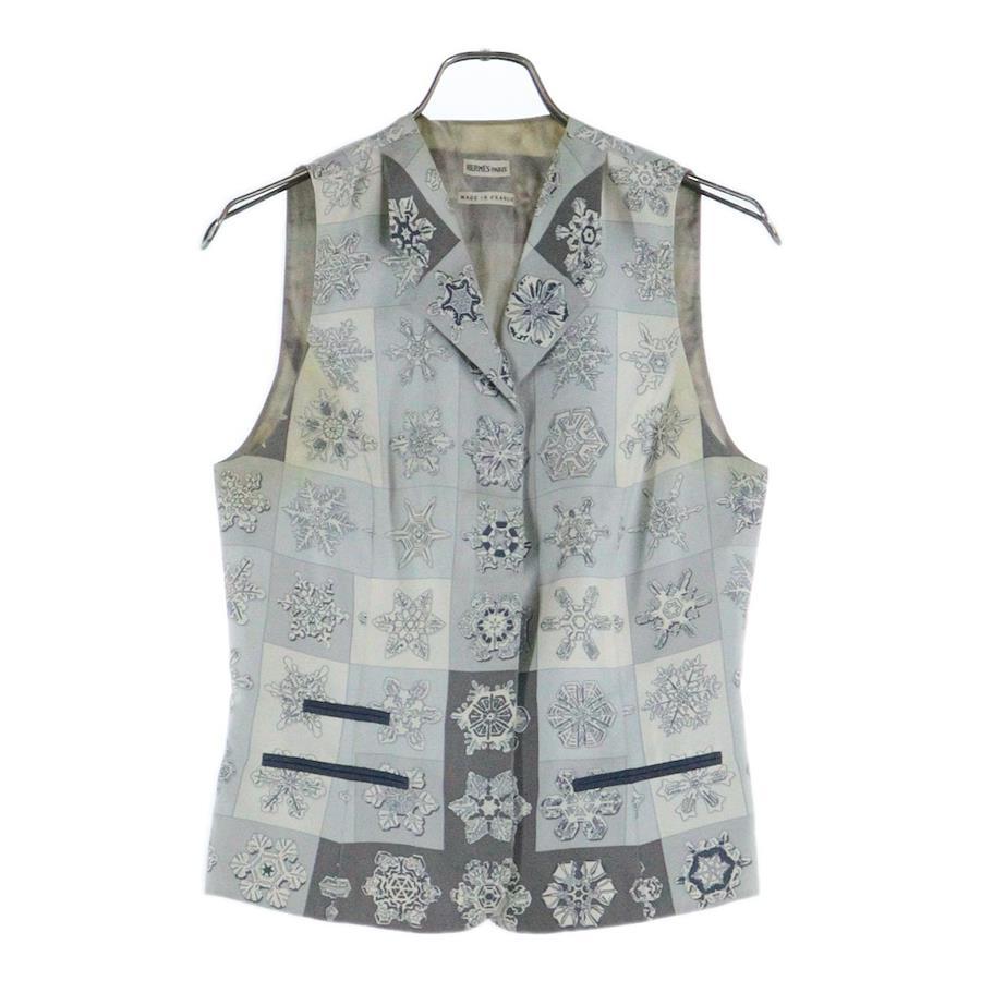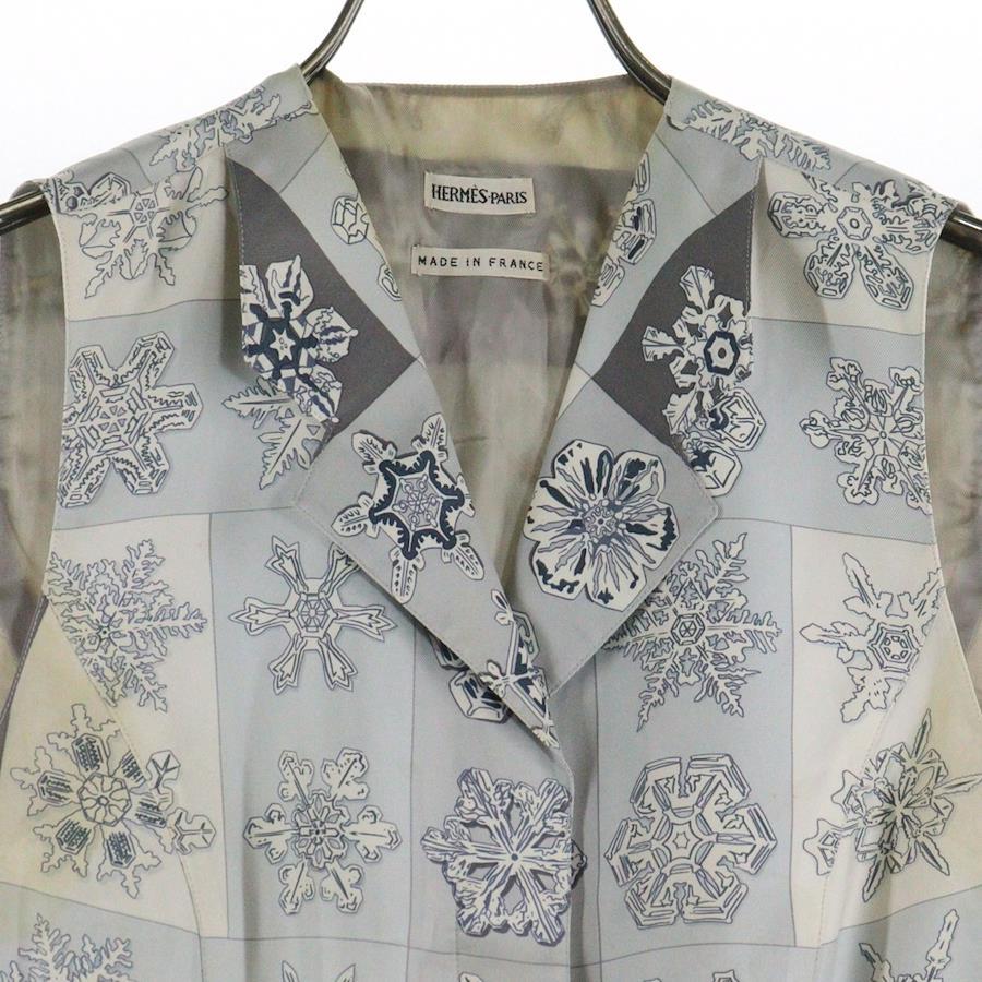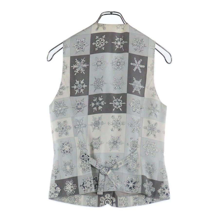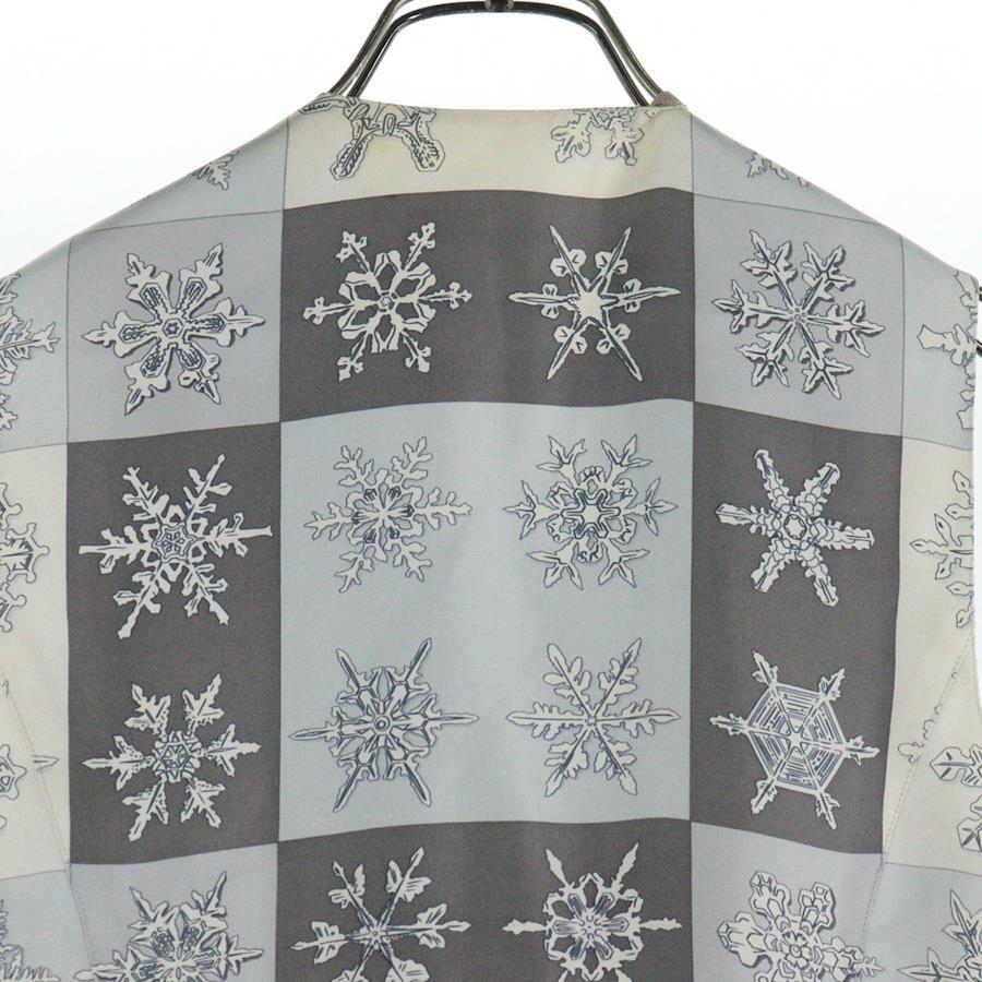 [モデル]スノーフレーク 雪の結晶総柄プリント シルク ノースリーブ ジャケット ジレ ベスト グレー/ライトブルー