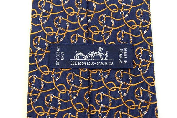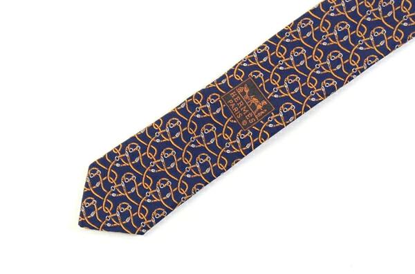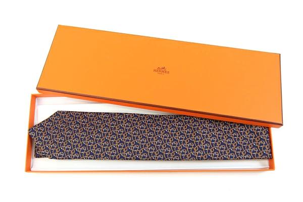 Hermès tie 659269T, navy and orange, 100% silk, pre-owned, suitable for men's suits, business, and formal occasions.