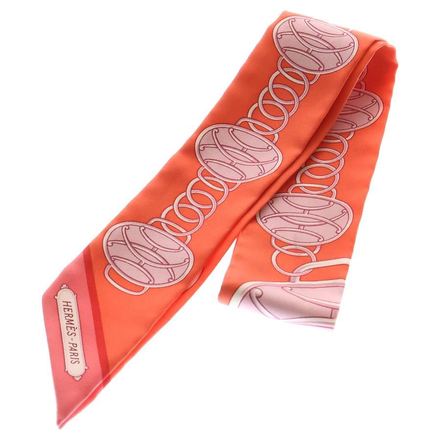 [モデル]ツイリー リフト プロフィール チェーンプリント 総柄 シルク スカーフ ピンク
