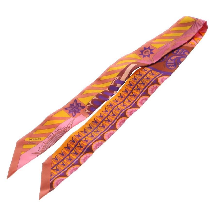 [モデル]Twilly Scarf ツイリースカーフ クレタ 幾何学 オレンジ調