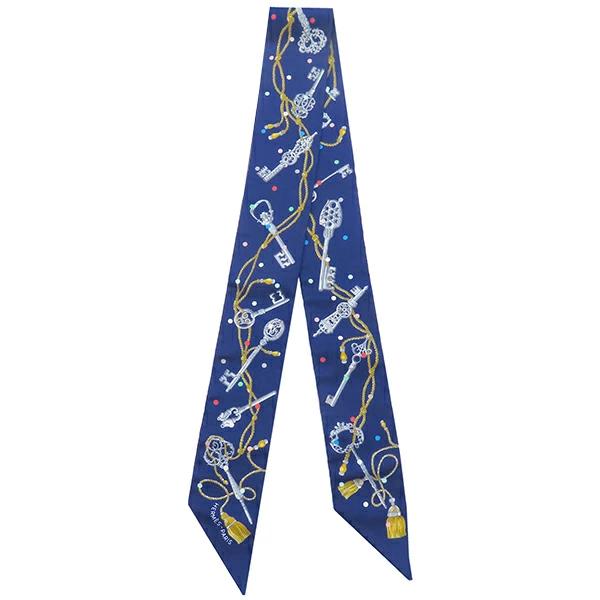エルメス HERMES ツイリー ツイリー スカーフ シルク マリン×グリスアルジョン 【LES CLES A POIS/レ クレ ア ポア】 - レディース 【箱】定番 人気 美品 【中古】