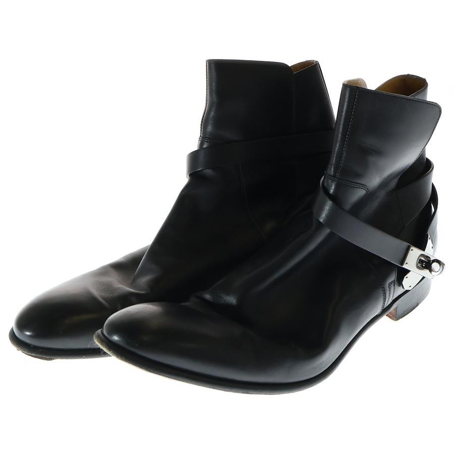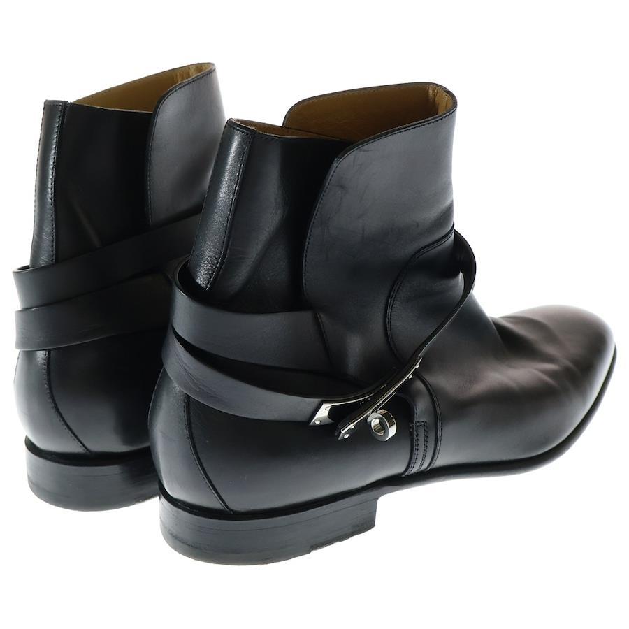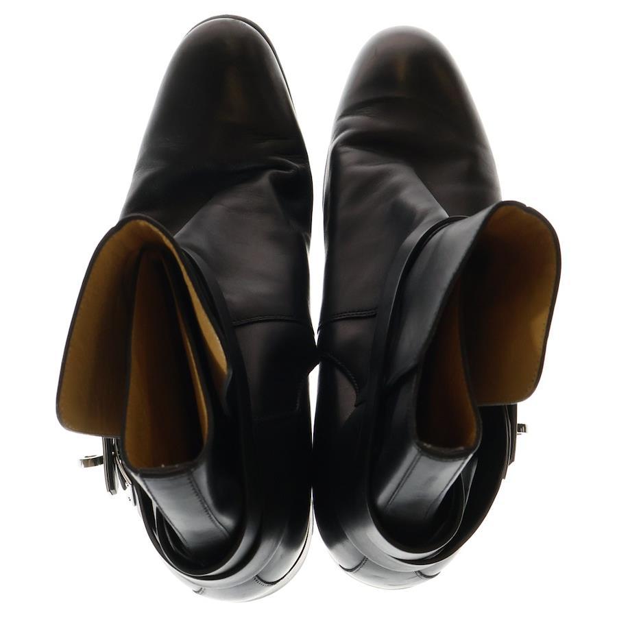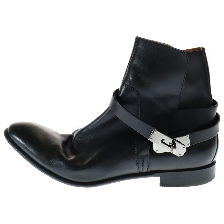 [モデル]ヴェオ ケリー シルバー金具 ストラップ レザー ショートブーツ ブラック