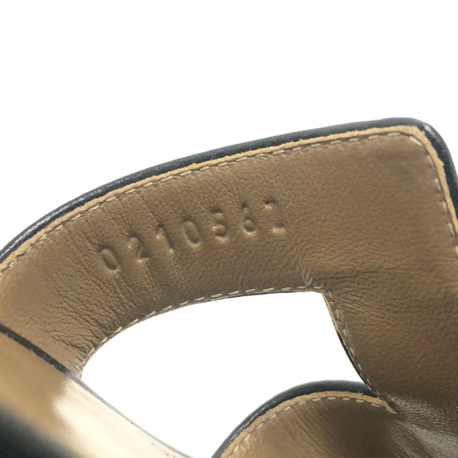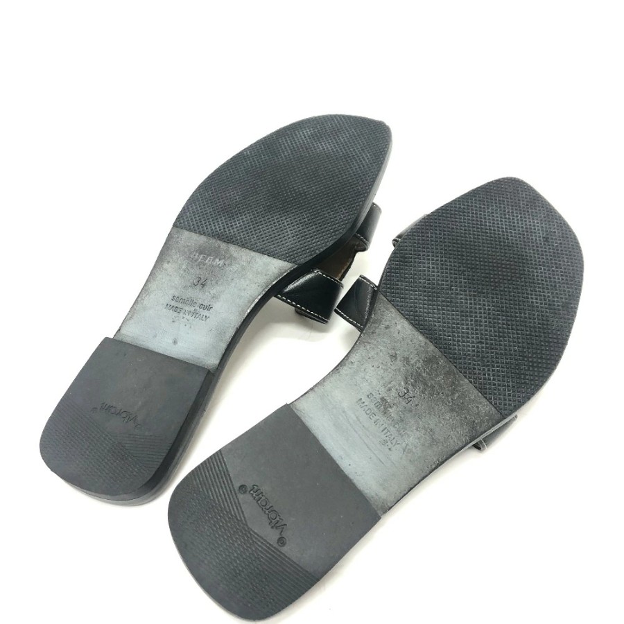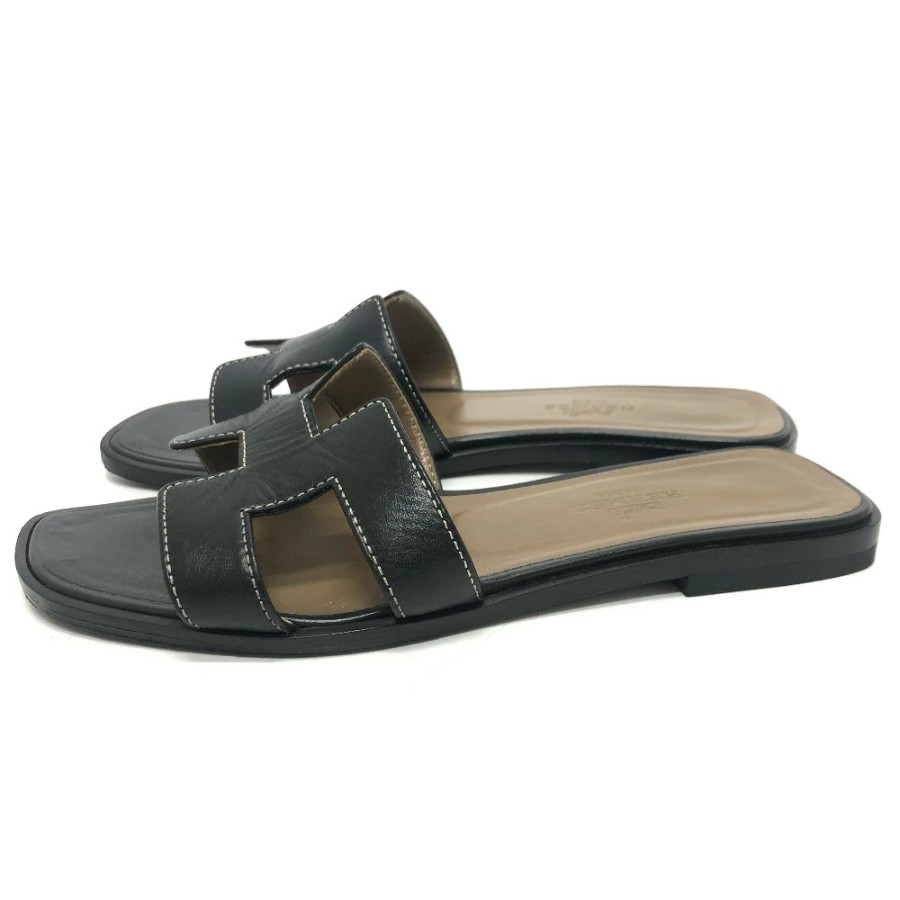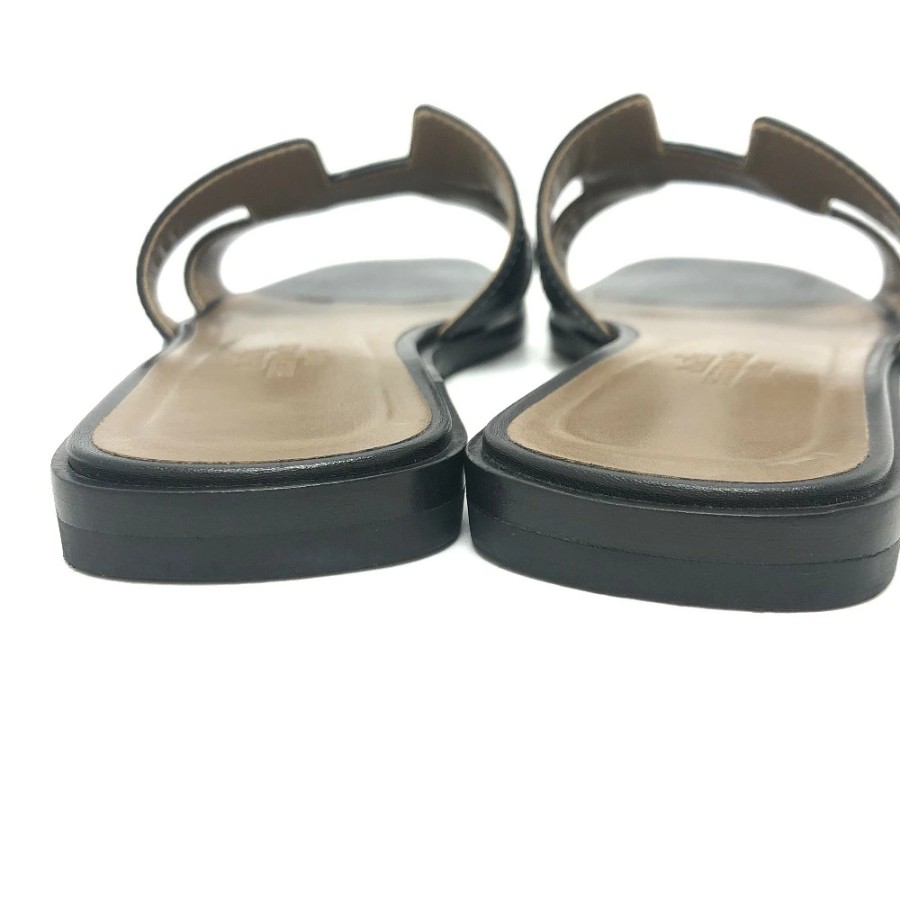 HERMES 021056Z Oran H Logo Open Toe Shoes, Sandals, Leather, Women's, Black [Used]