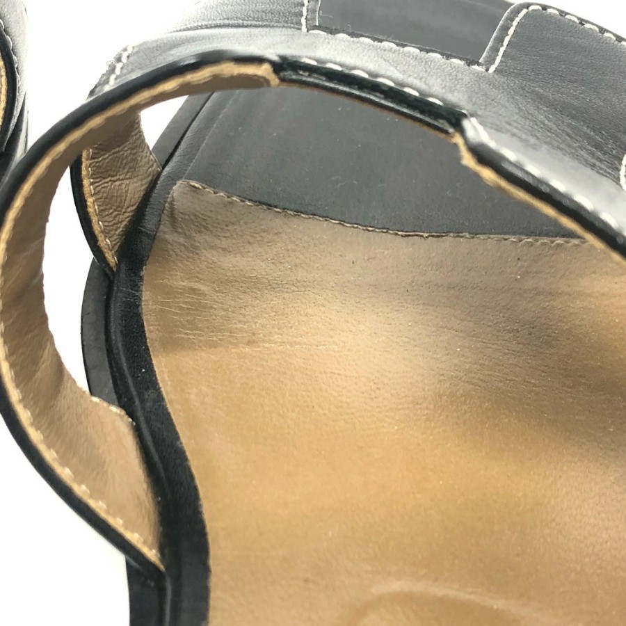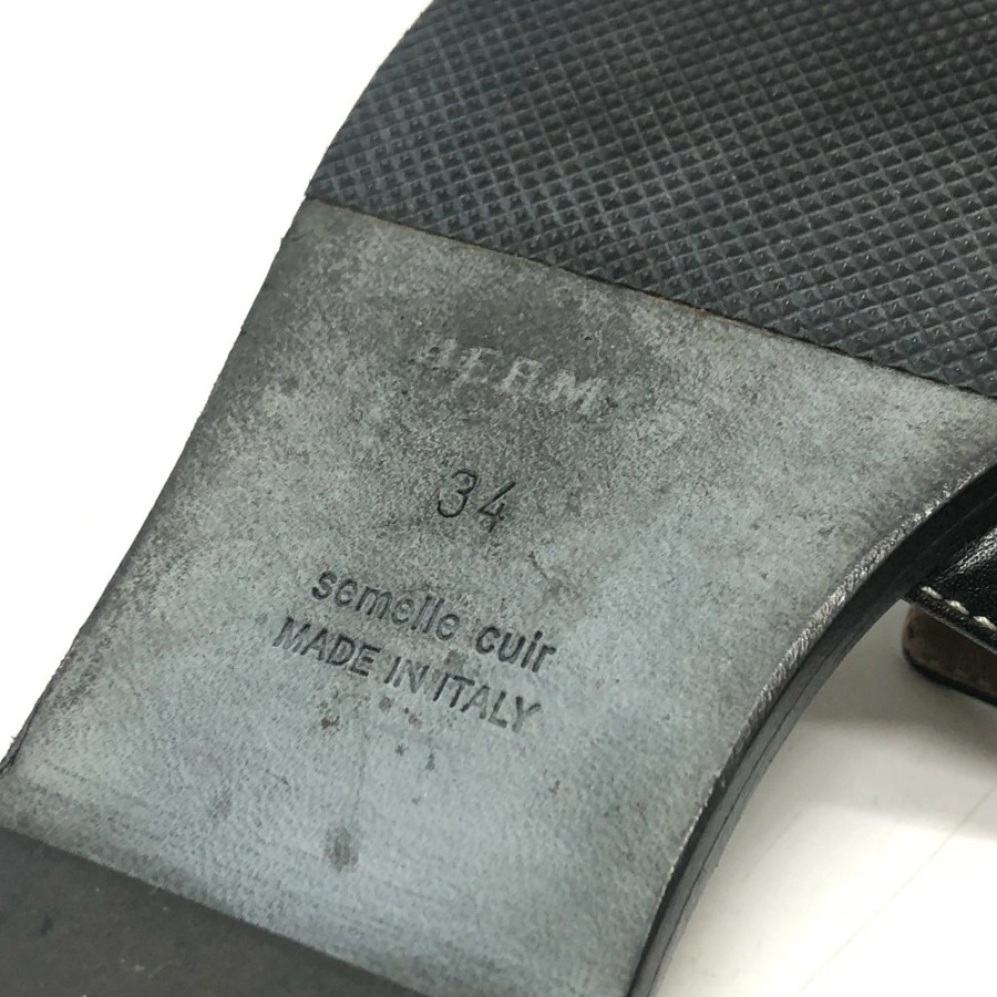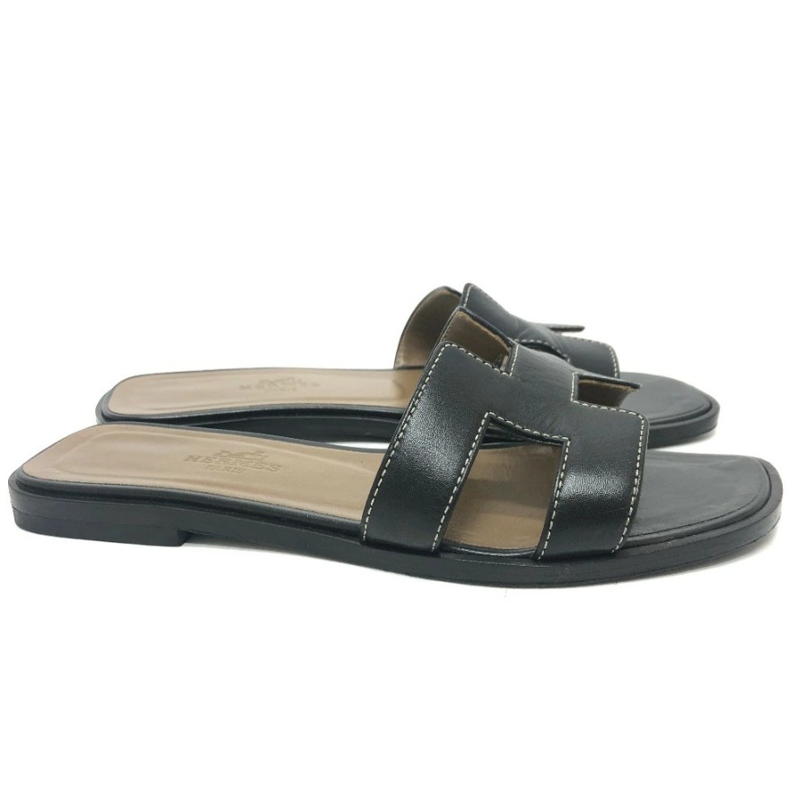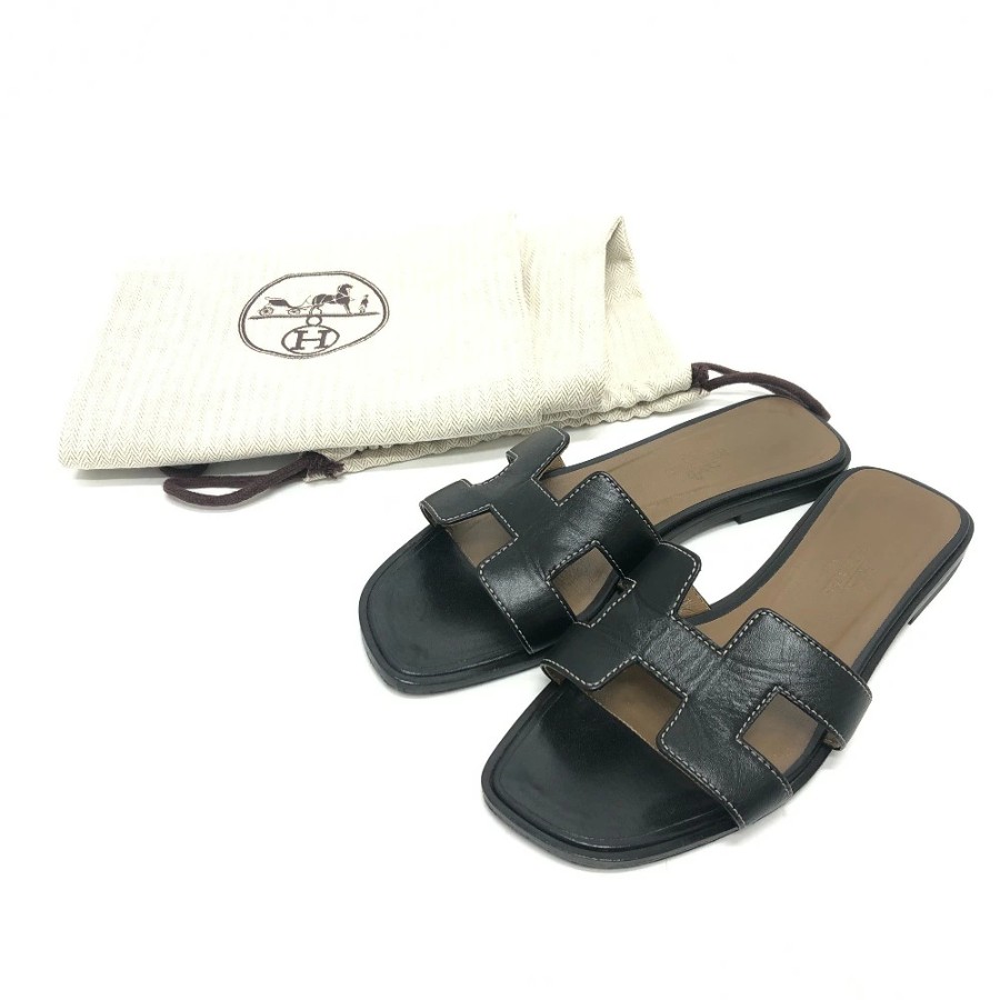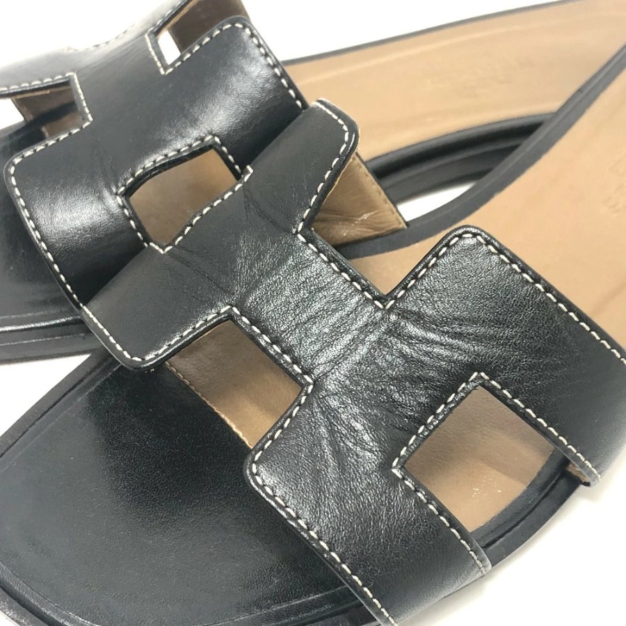HERMES 021056Z Oran H Logo Open Toe Shoes, Sandals, Leather, Women's, Black [Used]